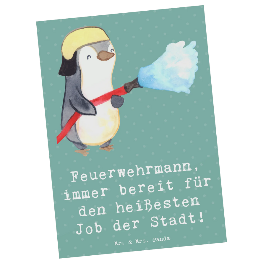 Suchst du nach einem ganz besonderen Geschenk für einen Feuerwehrmann oder eine Feuerwehrfrau? Die Postkarte "Feuerwehrmann – immer bereit für den heißesten Job der Stadt!" aus der bezaubernden Berufe-Kollektion von Mr. & Mrs. Panda ist die ideale Wahl!