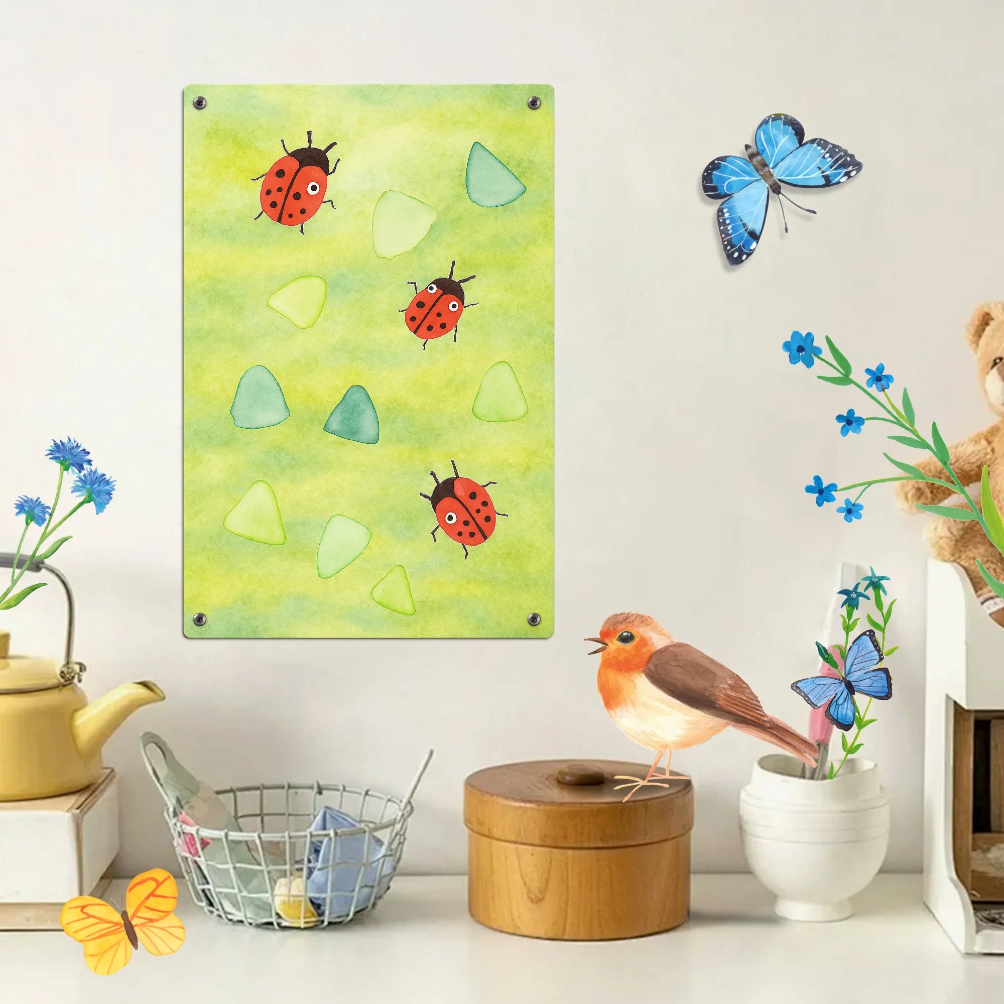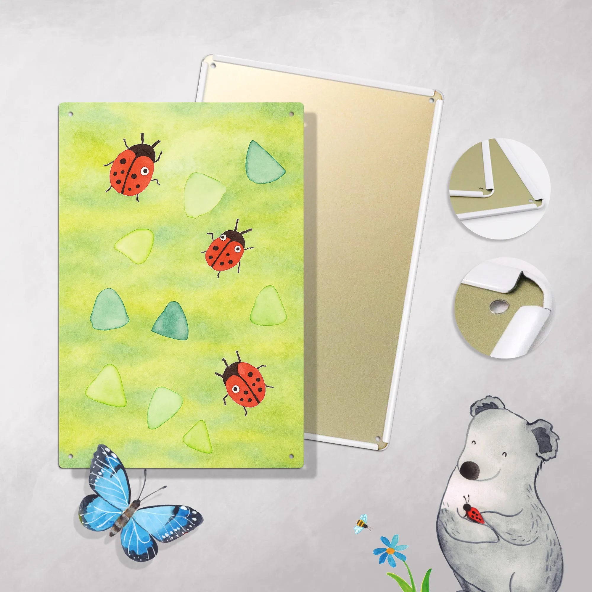 Das Marienkäfer Design verbindet süße, verspielte Elemente mit einem eleganten Aquarellstil. Es bringt Nostalgie und Frische zugleich in dein Zuhause und trifft genau den Geschmack von Menschen, die liebevolle Details und kreativen Ausgleich schätzen.