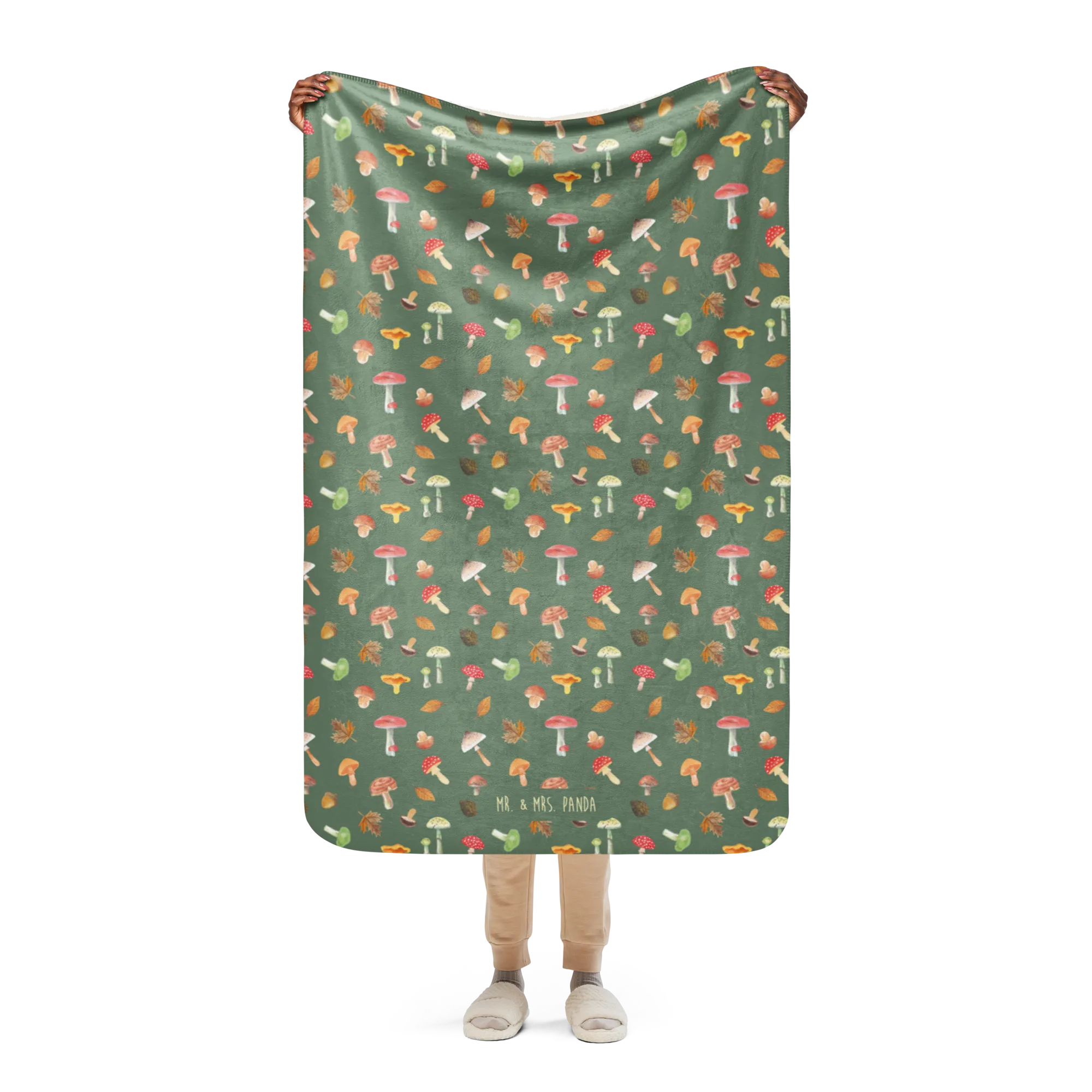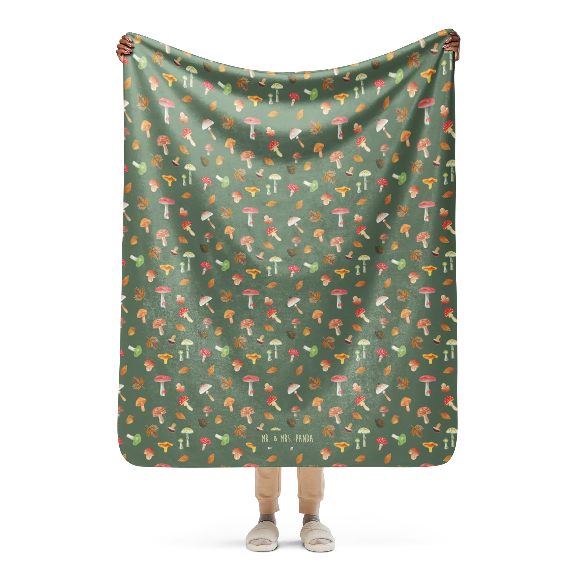 Sherpa Kuscheldecke Pilz Wald Muster - 130 x 155 cm