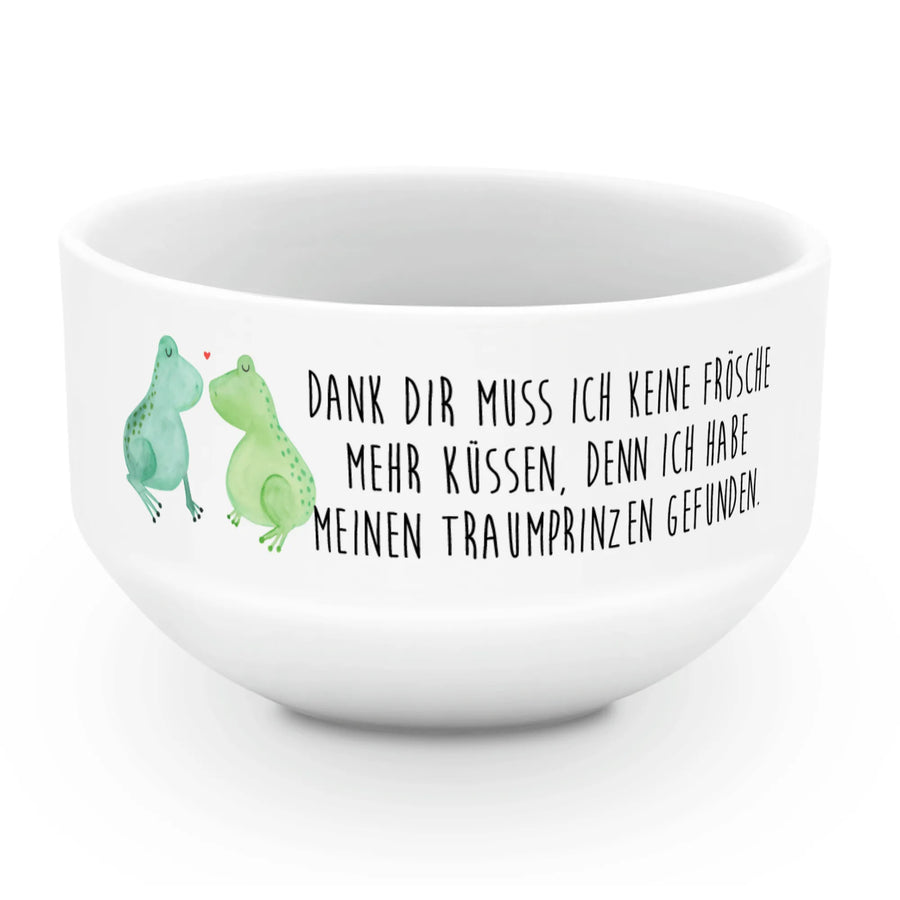 Verliebt, verspielt und zum Dahinschmelzen: Die Müslischale „Frosch Liebe“ aus der Mr. & Mrs. Panda Liebe-Kollektion macht jeden Morgen zu einem kleinen Liebesfest. Zwei entzückende handgezeichnete Frösche schauen sich liebevoll an, ein rotes Herz schwebt zwischen ihren Köpfen und der charmante Spruch „Dank dir muss ich keine Frösche mehr Küssen, denn ich habe meinen Traumprinzen gefunden.“ sorgt garantiert für ein Lächeln beim Frühstück. 💚
