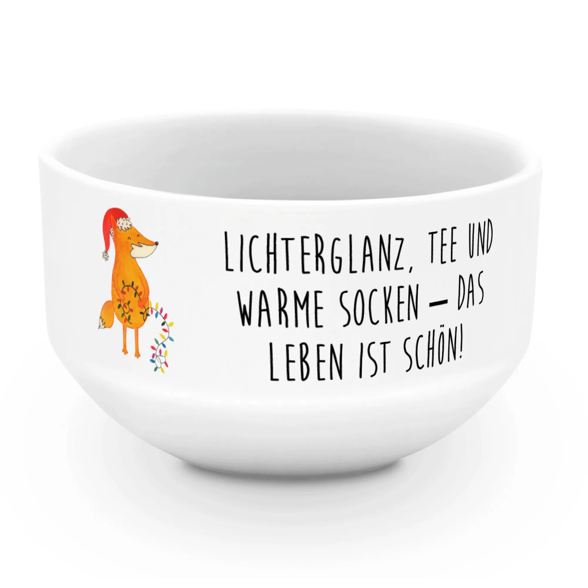 Der Spruch 'Lichterglanz, Tee und warme Socken – das Leben ist schön!' fügt eine fröhliche Note hinzu und macht die Schale zu einem perfekten Geschenk für deine Liebsten. Ob als Weihnachtsgeschenk für Familie und Freunde oder um dir selbst eine Freude zu machen, diese schöne Müslischale ist genau das richtige.