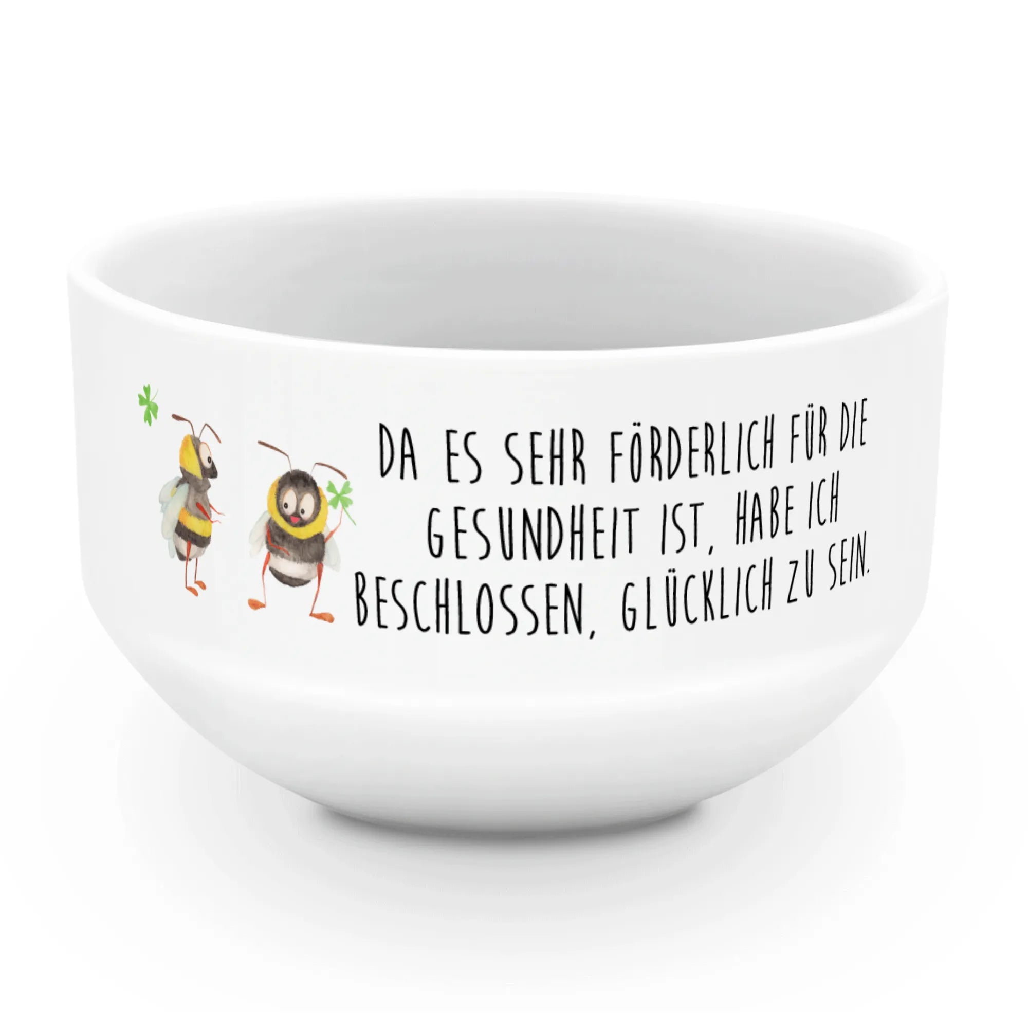 Entdecke die wunderschöne Müslischale aus der Mr. & Mrs. Panda Collection mit dem zauberhaften Motiv 'Hummeln mit Kleeblatt'. Diese bezaubernde Müslischüssel vereint einzigartigen Stil und funktionale Eleganz und ist somit das perfekte Geschenk für deine Liebsten oder für dich selbst!