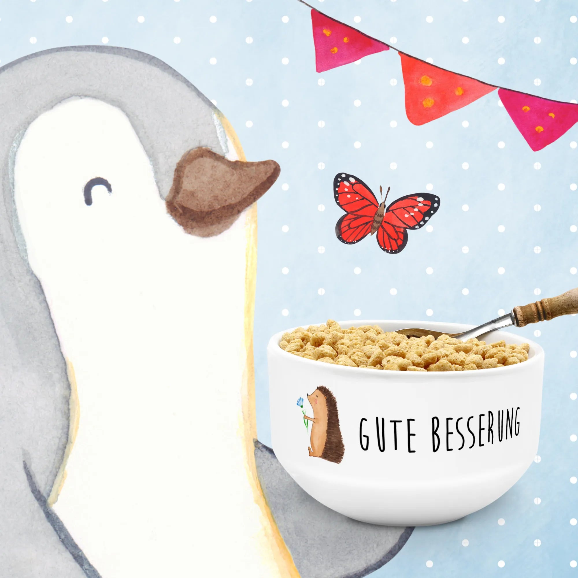 Gerade in Zeiten, in denen man Freunden oder Familienmitgliedern Gute Besserung wünschen möchte, ist diese Müslischale mit dem Spruch „Gute Besserung“ ein wunderbares Mitbringsel. Sie eignet sich bestens für einen Krankenhausbesuch oder als nette Aufmerksamkeit für jemand, der sich eine Auszeit nehmen muss. Der süße Igel verleiht jedem Frühstück einen Hauch von Freude und ist ein idealer Lichtblick statt einer schlichten Schüssel.