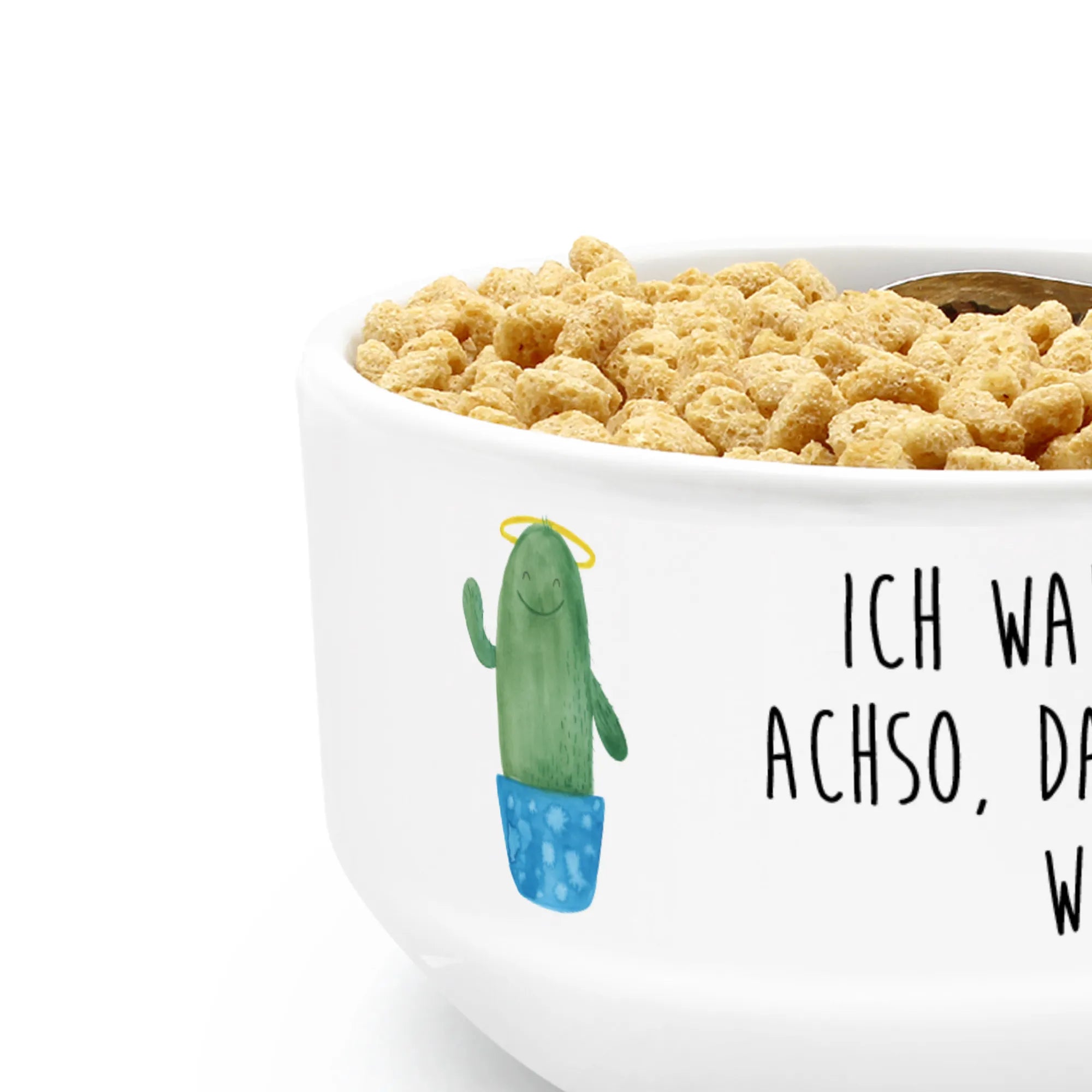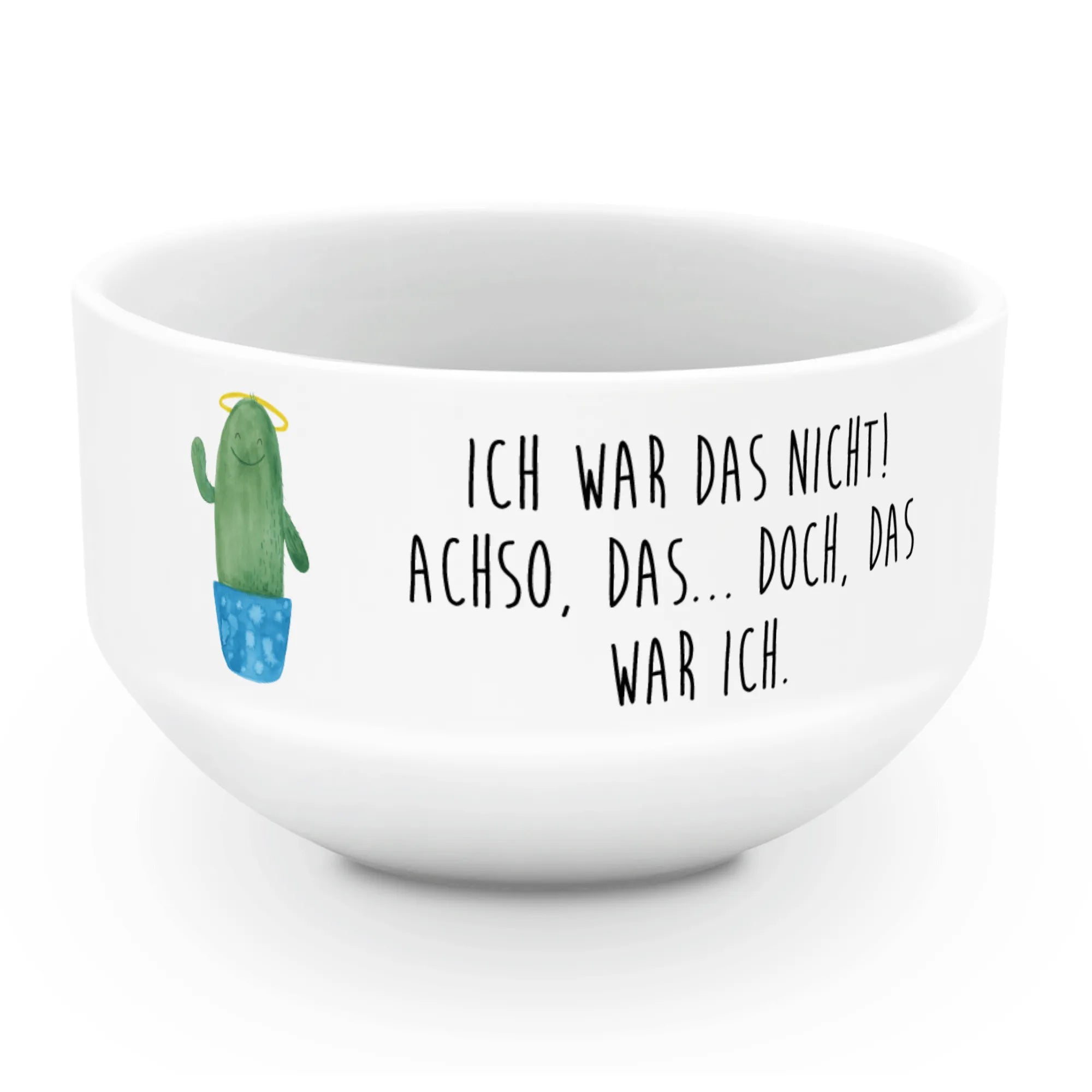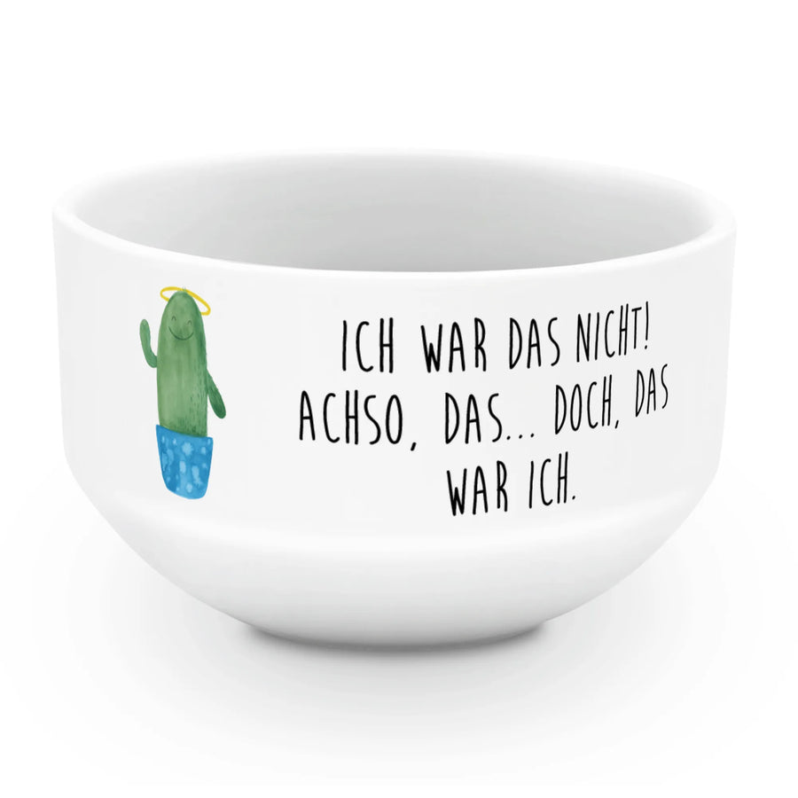 Mr. & Mrs. Panda Müslischale „Kaktus Heilig“ – ein kleines Kunstwerk für Deinen Frühstückstisch. 🌵✨ Der liebevoll in Aquarell gemalte Kaktus mit Heiligenschein sitzt andächtig in seinem Blumentopf und verbreitet sofort gute Laune. Kombiniert mit dem frechen Spruch „Ich war das nicht! Achso, das... Doch, das war ich.“ wird diese Schale zum charmanten Highlight beim Müsli, Joghurt oder Dessert.