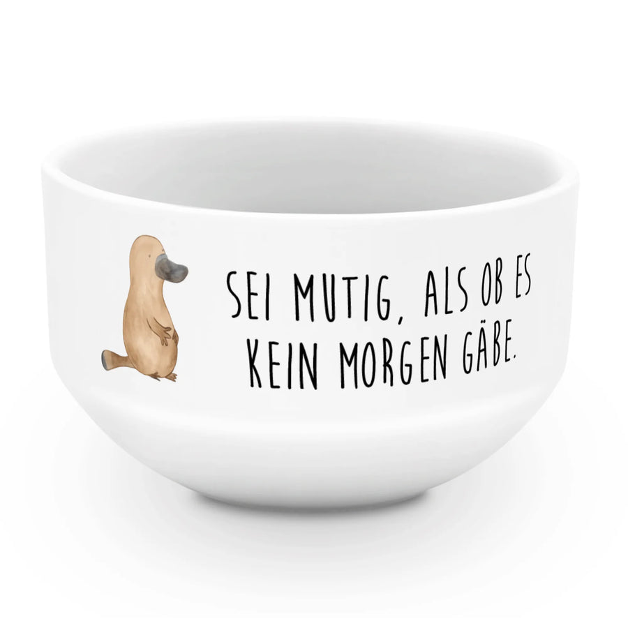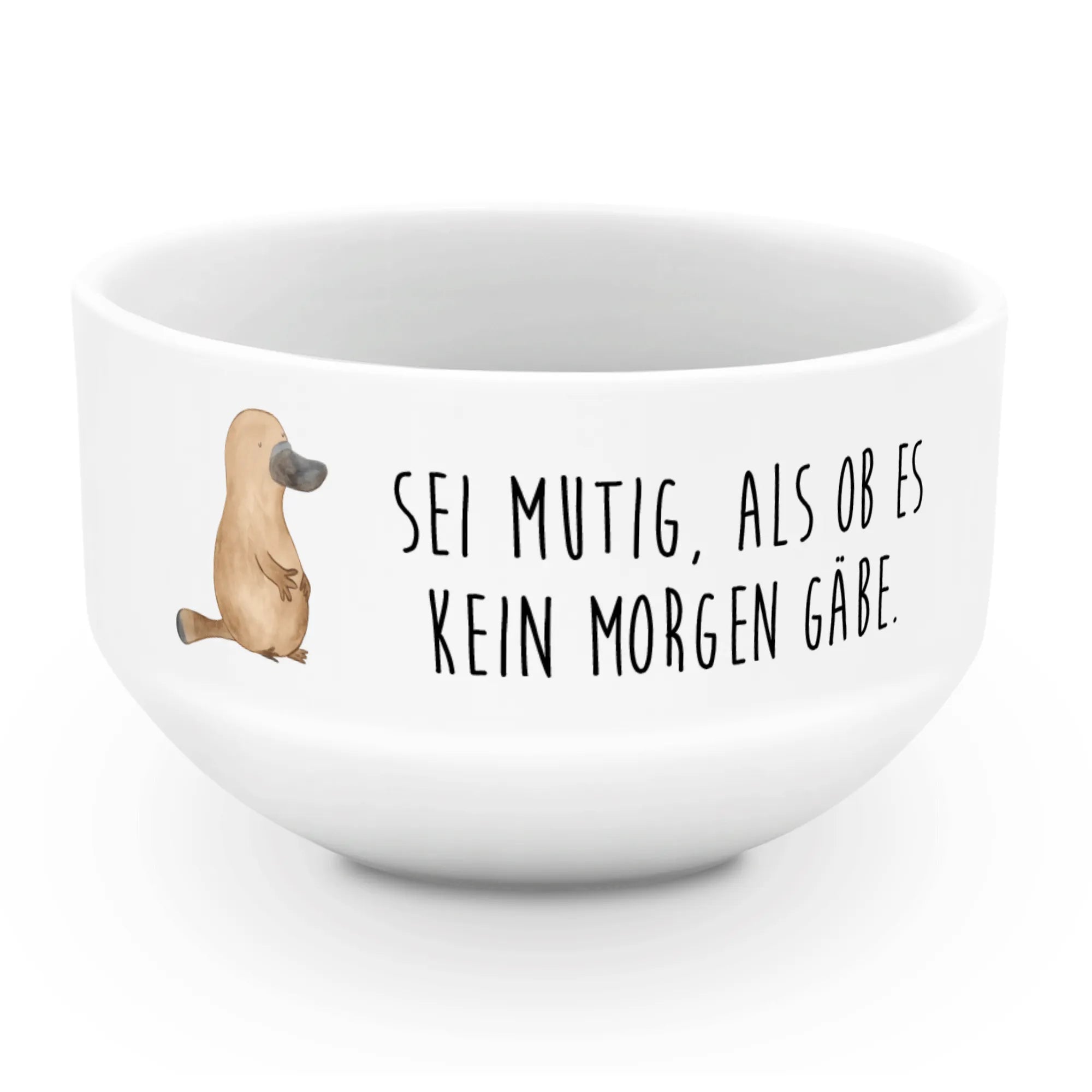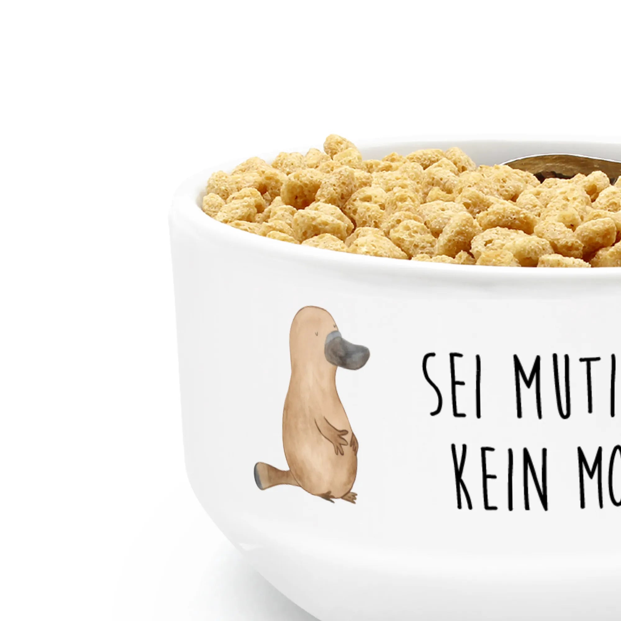 Entdecke die wunderschöne Müslischale mit dem lustigen Schnabeltier-Konrad, das dir die perfekte Botschaft für einen mutigen Start in den Tag vermittelt: "Sei mutig, als ob es kein Morgen gäbe." Diese fröhliche Müslischale aus hochwertiger Keramik bietet nicht nur Platz für dein gesundes Frühstück, sondern auch eine inspirierende Lebensweisheit, die dich jeden Morgen motiviert.