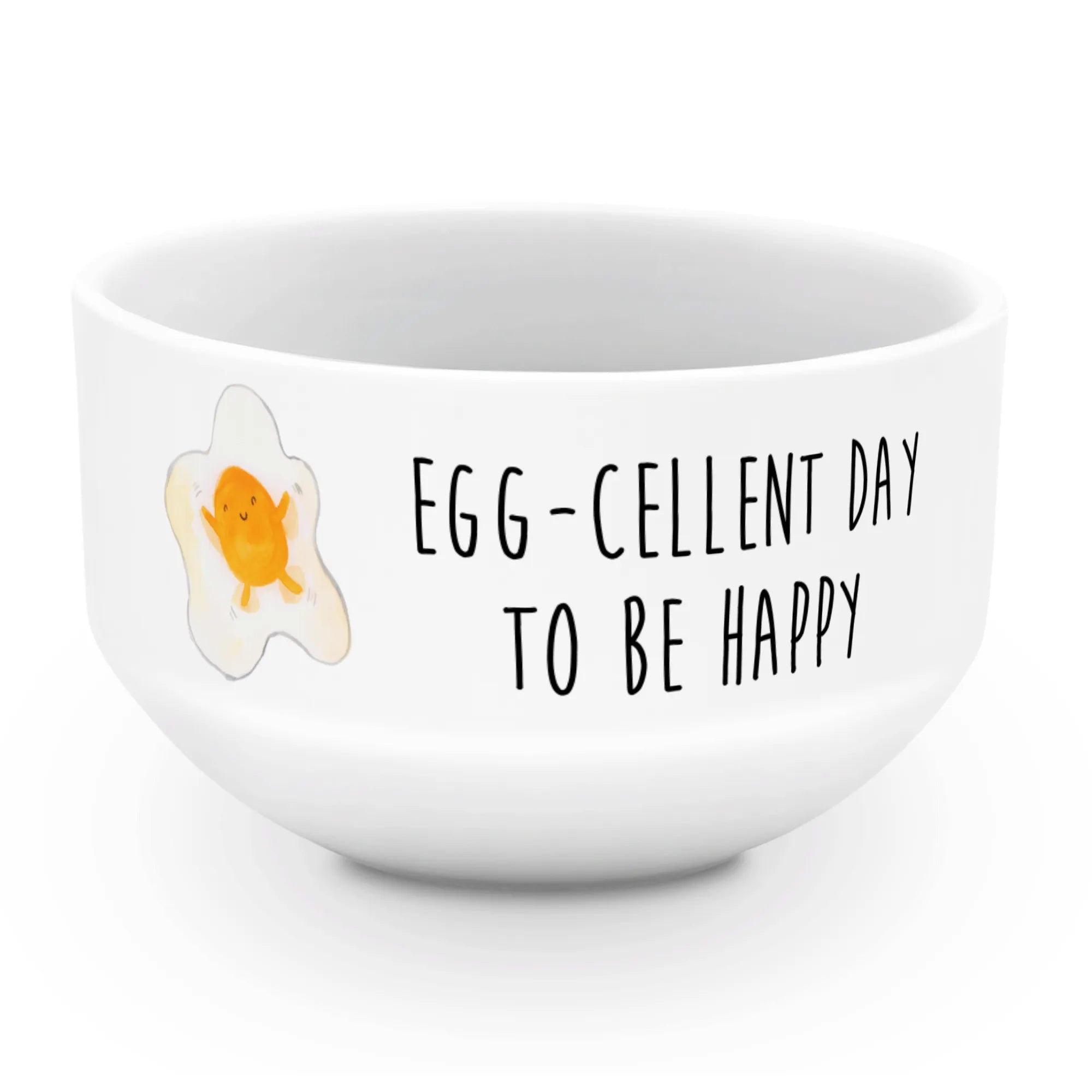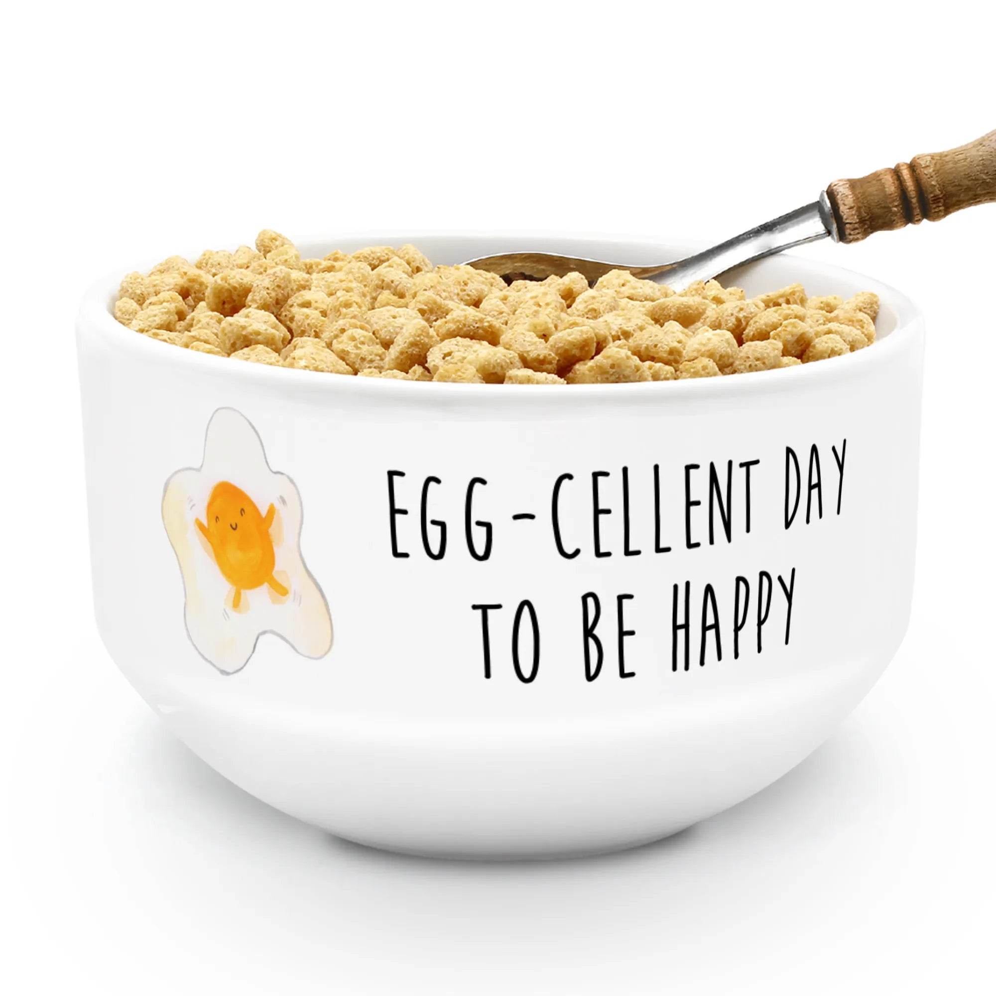 Entdecke die wunderschöne Müslischale mit dem niedlichen Spiegelei-Motiv aus der beliebten Small World Kollektion von Mr. & Mrs. Panda. Diese Müslischale ist nicht nur ein Blickfang auf deinem Frühstückstisch, sondern bringt auch ein Lächeln in deinen Alltag. Sie hat den liebevollen Slogan 'Egg-cellent day to be happy', der jedes Frühstück zu einem fröhlichen Erlebnis macht!