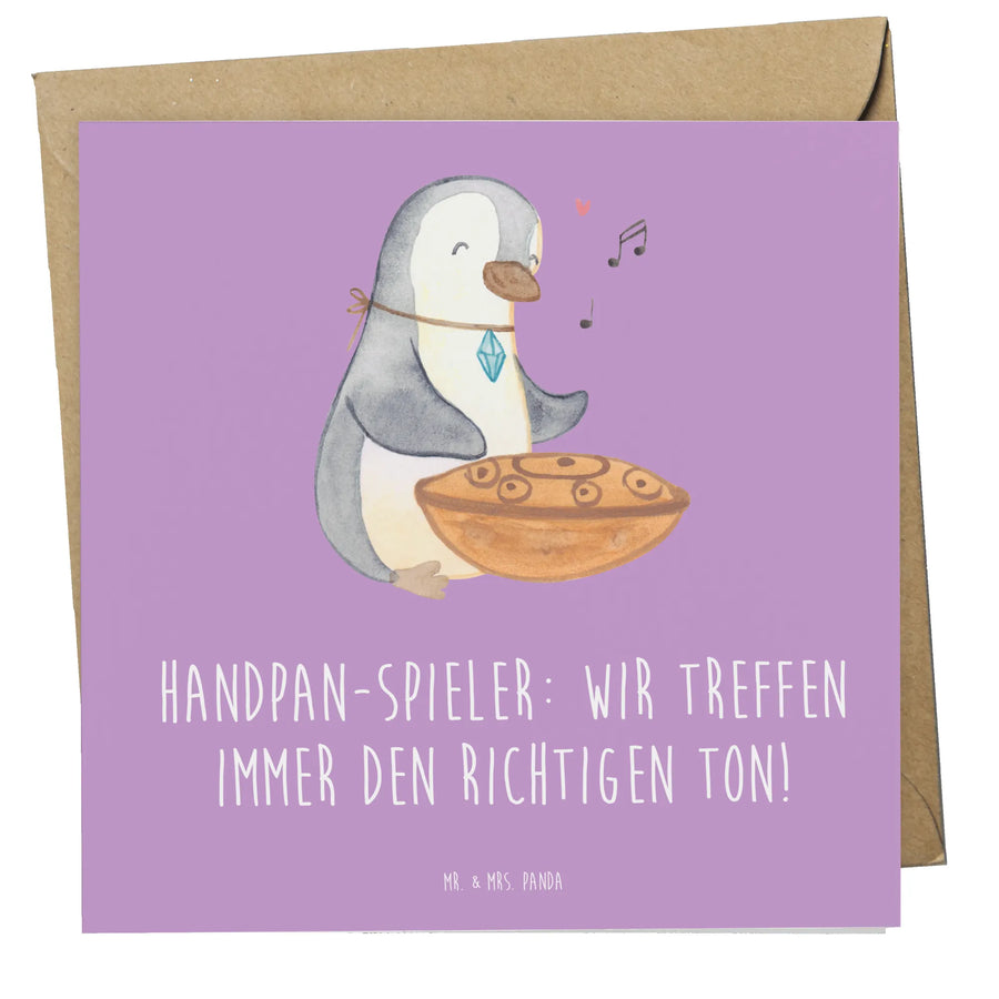 Auf der Vorderseite ziert die Karte der Slogan "Handpan-Spieler: Wir treffen immer den richtigen Ton!" und auf der matte Innenseite hast du ausreichend Platz für persönliche Nachrichten. Ein passender Umschlag ist natürlich inklusive, so dass du gleich loslegen kannst.