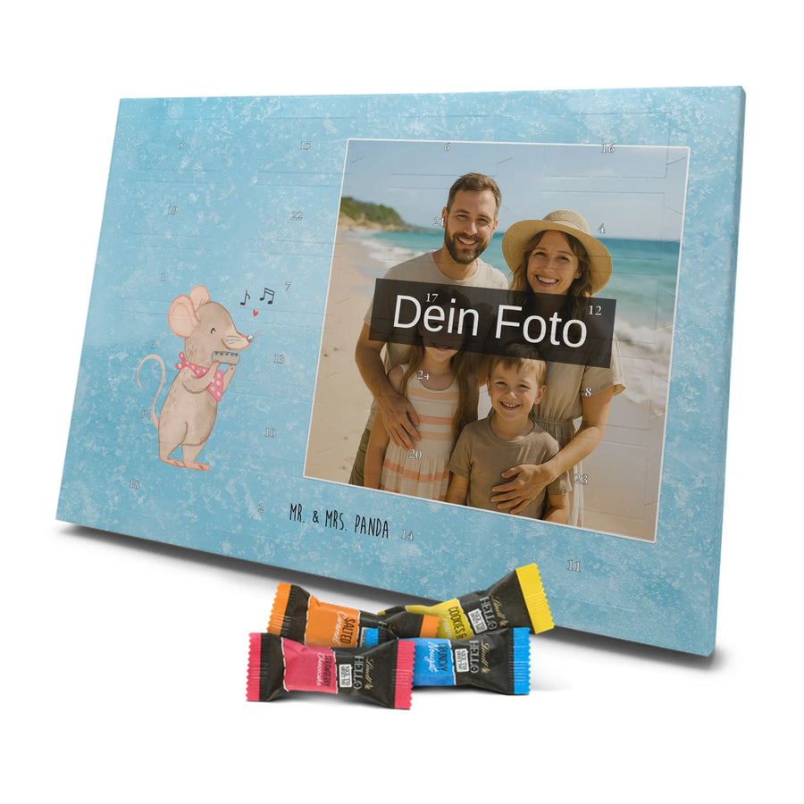 Personalisierter Schoko Foto Adventskalender Maus Mundharmonika - Lindt HELLO - Eisblau