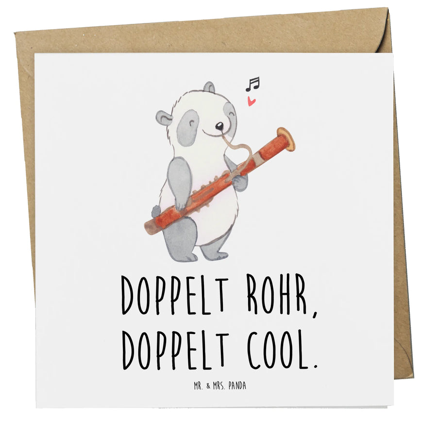 Die Deluxe Karte Fagott aus der Kollektion Musizieren & Instrumente von Mr. & Mrs. Panda ist das perfekte Geschenk für Musikliebhaber. Diese hochwertige, quadratische Karte wurde liebevoll gestaltet und vereint ein einzigartiges Fagott-Motiv mit dem Spruch "Doppelt Rohr, doppelt cool!"