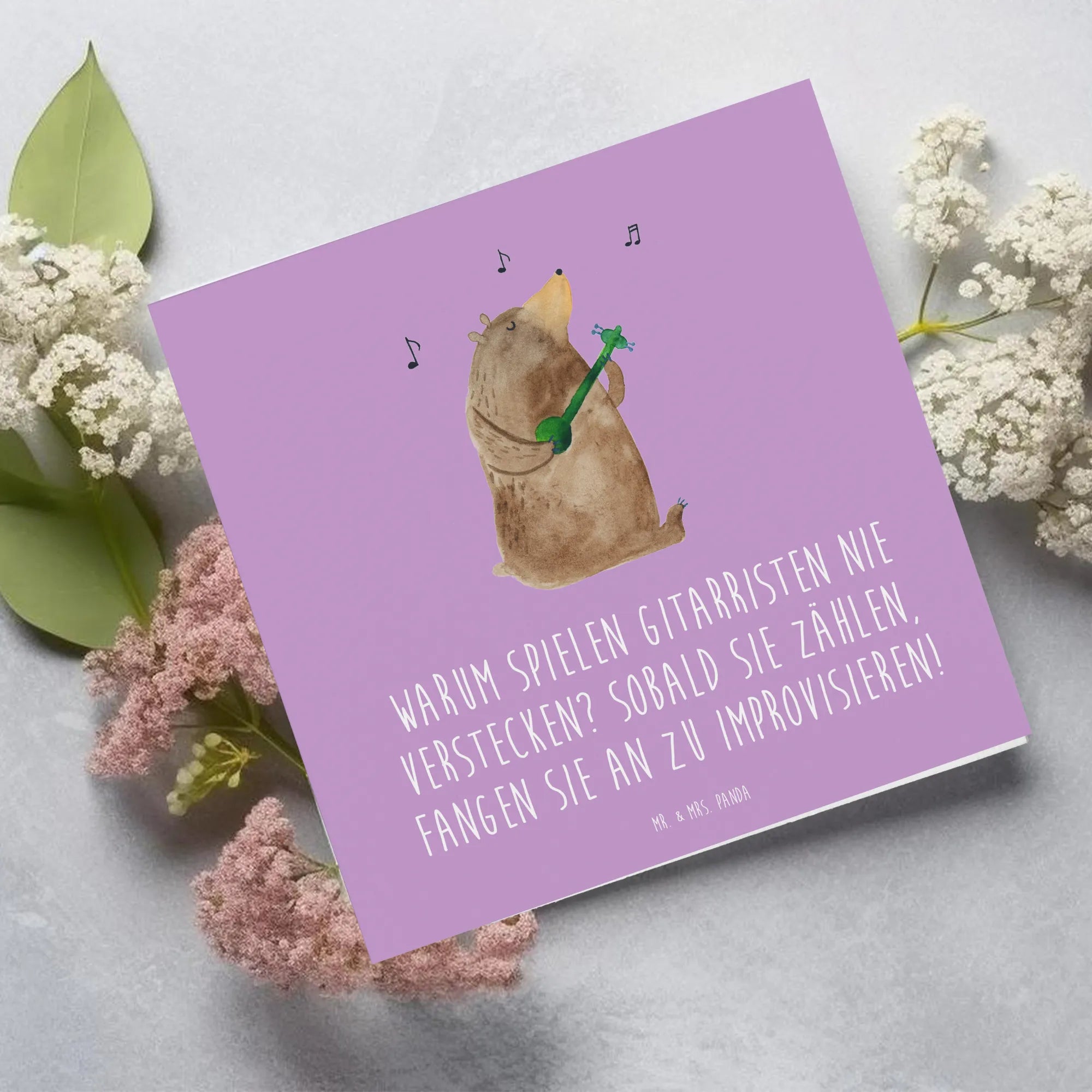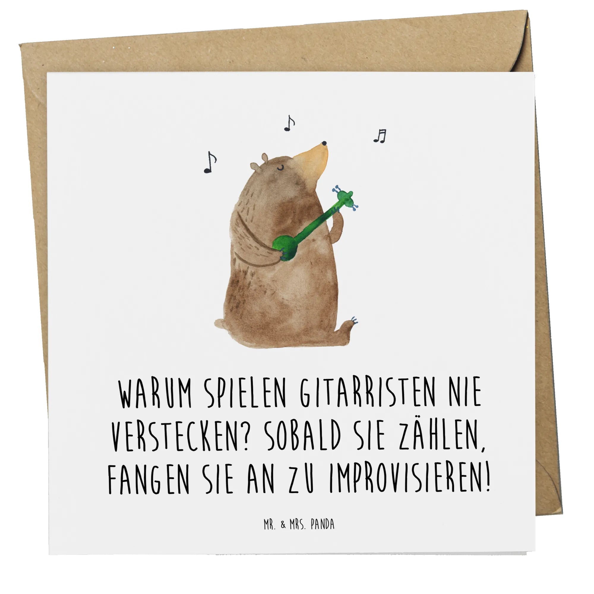 Entdecke die Deluxe Karte mit dem besonderen Motiv Gitarre von Mr. & Mrs. Panda! Diese hochwertige quadratische Karte ist nicht nur einfach ein Stück Papier, sondern eine liebevolle Botschaft, die Musiker und Musikliebhaber begeistert.