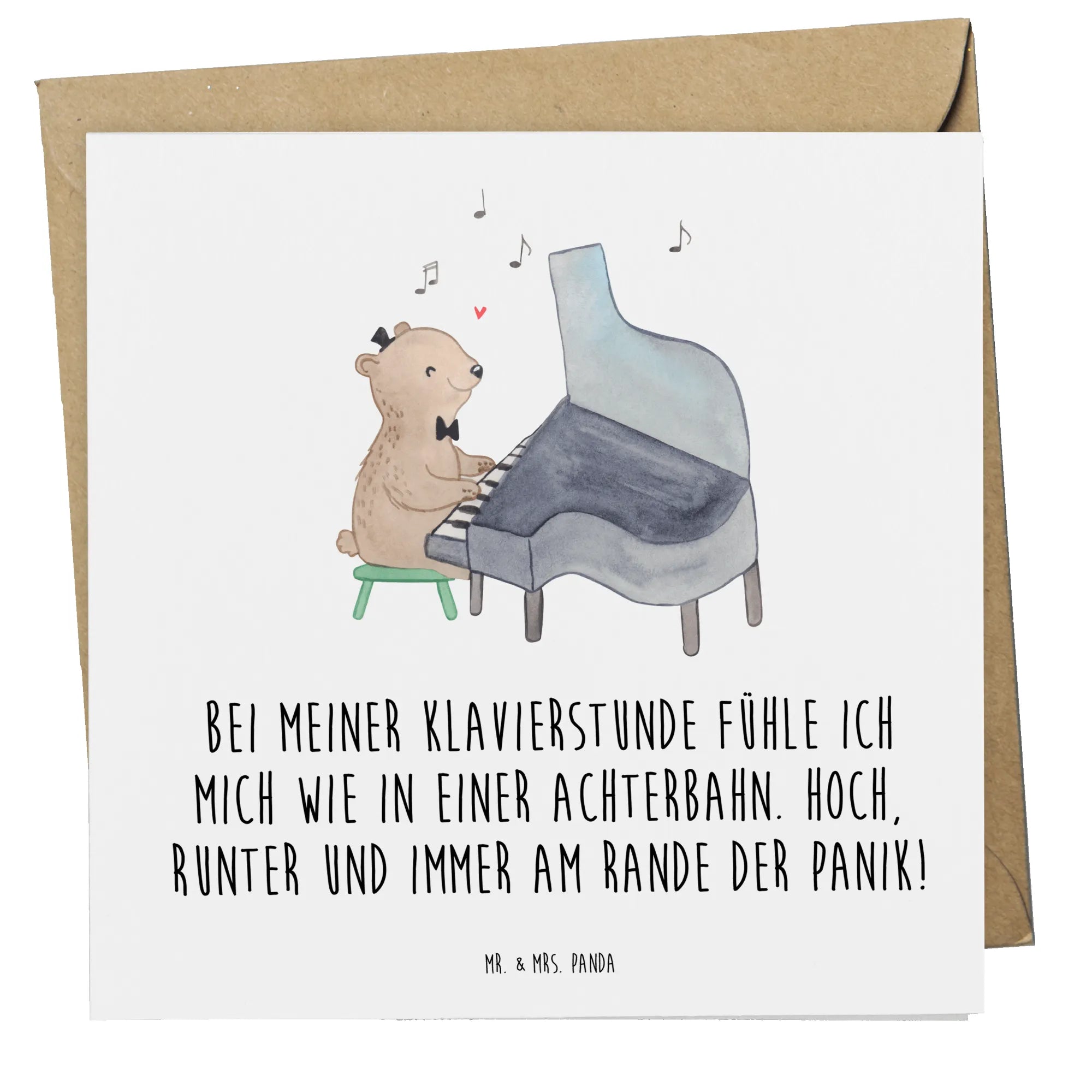 Mit dieser liebevoll gestalteten Grußkarte aus der Mr. & Mrs. Panda Kollektion verschenkst Du pure Stimmung: ein zartes Lavendeltraum im Hintergrund, ein stilvolles Klaviermotiv und der freche Spruch „Bei meiner Klavierstunde fühle ich mich wie in einer Achterbahn. Hoch, runter und immer am Rande der Panik!“ – perfekt für alle, die das Klavierspielen lieben oder gerade lernen. 🎹💜