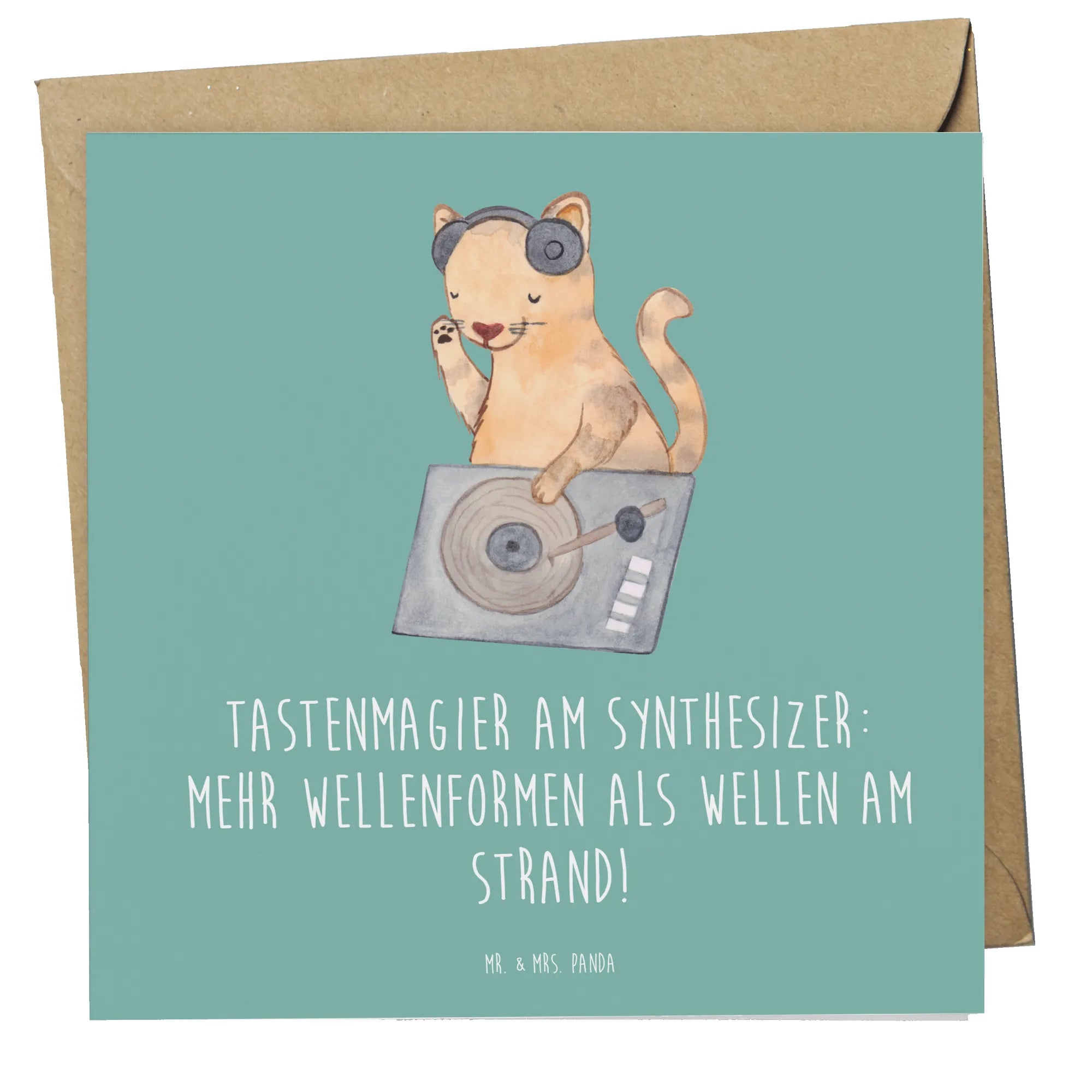 Die Deluxe Karte mit dem Synthesizer-Motiv von Mr. & Mrs. Panda ist das perfekte Geschenk für alle Musikliebhaber und Kreativen! Mit ihrem liebevoll gestalteten Design und dem witzigen Spruch 'Tastenmagier am Synthesizer: Mehr Wellenformen als Wellen am Strand!' zieht sie alle Blicke auf sich. Diese wundervoll hochwertige quadratische Grußkarte aus feinstem 300 Gramm Karton ist nicht nur ein Eye-Catcher, sondern auch ein fühlbarer Genuss.