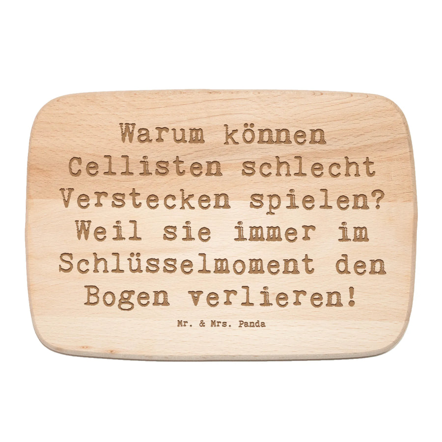 Das Cello, ein faszinierendes Streichinstrument, symbolisiert nicht nur klassische Musik, sondern auch moderne Klänge und Emotionalität. Mit dem Spruch 'Warum können Cellisten schlecht Verstecken spielen? Weil sie immer im Schlüsselmoment den Bogen verlieren!' zaubert dieses Frühstücksbrett ein Lächeln auf die Gesichter der Beschenkten.
