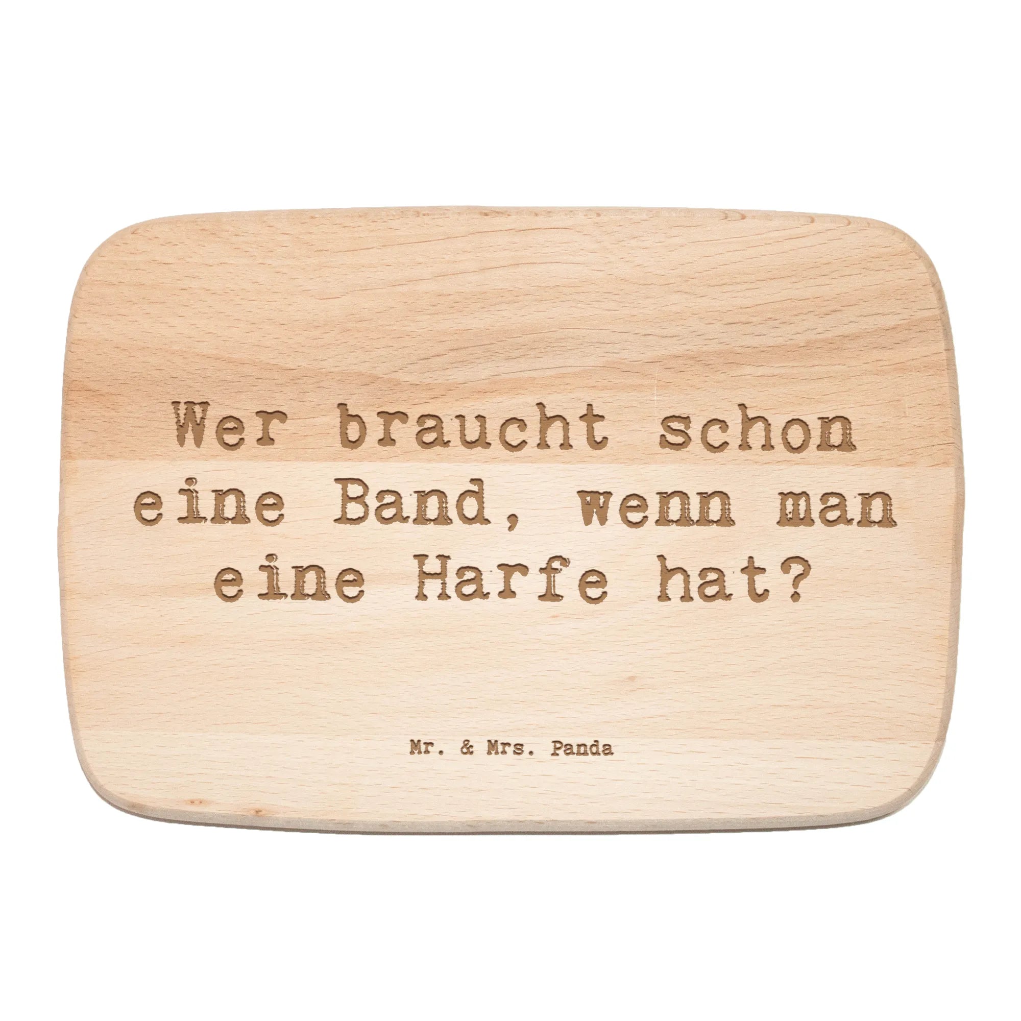 Das exquisit gestaltete Frühstücksbrett von Mr. & Mrs. Panda mit dem zauberhaften Motiv der Harfe ist nicht nur ein funktionales Küchenutensil, sondern auch eine stilvolle Dekoration für jeden Frühstückstisch! Dieses wunderschöne Frühstücksbrett aus robustem Birkenholz ist ideal für das Servieren von frisch gebackenem Brot, Obst oder leckeren Snacks. Die Lasergravur, die das elegante Motiv der Harfe sowie den charmanten Spruch "Wer braucht schon eine Band, wenn man eine Harfe hat?" enthält, verleiht dem Brett eine individuelle Note und sorgt dafür, dass dein Frühstück gleich viel himmlischer aussieht.