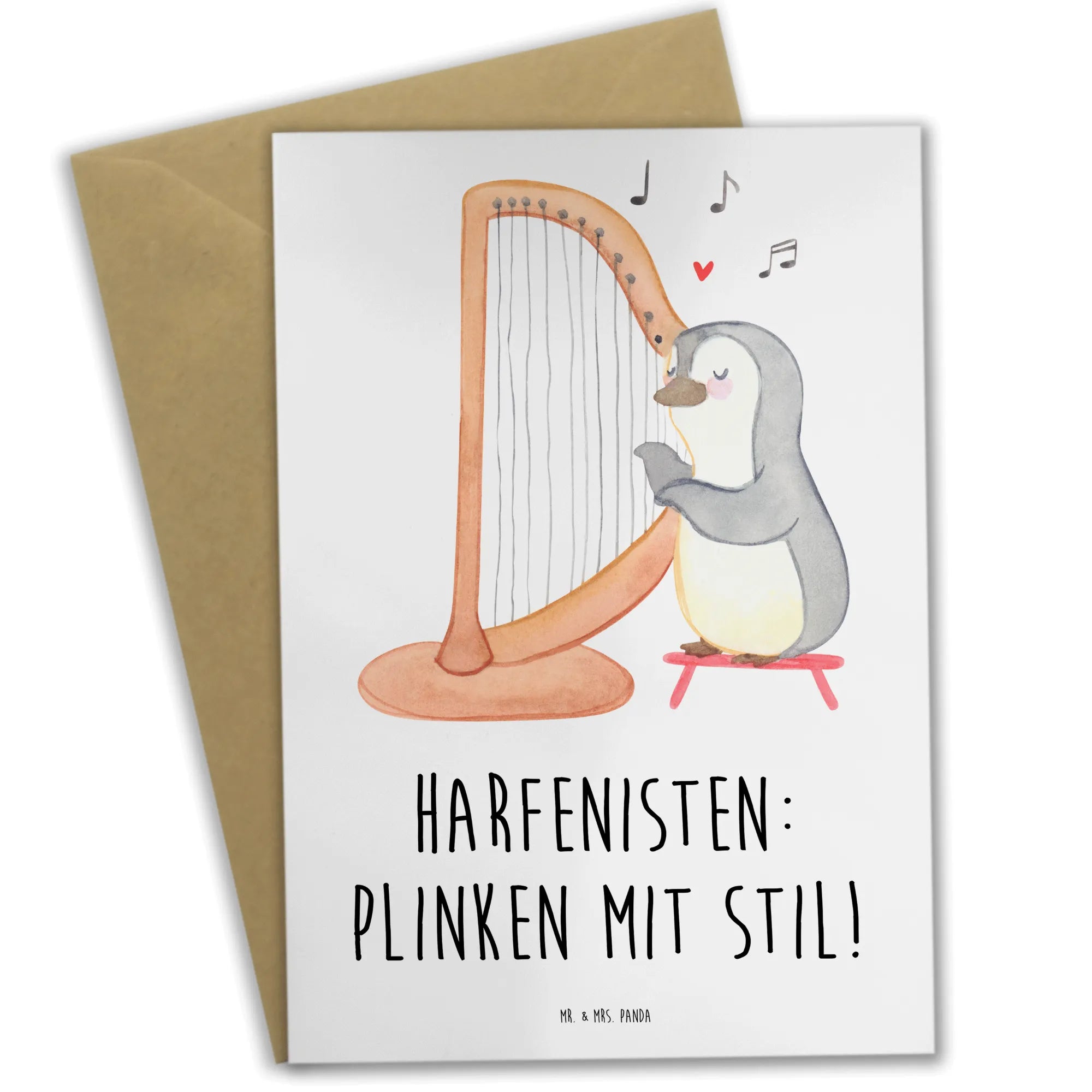 Diese zauberhafte Grußkarte von Mr. & Mrs. Panda ist das perfekte Geschenk für jeden Musikliebhaber und besonders für Harfenisten! Mit einem himmlischen Motiv einer Harfe und dem Slogan 'Harfenisten: Plinken mit Stil!' begeistert diese Karte nicht nur durch ihre Einzigartigkeit, sondern auch durch die Möglichkeit, individuelle Grüße zu hinterlassen.