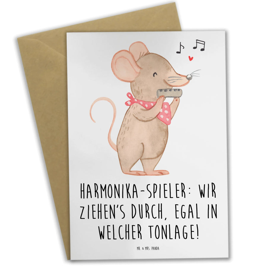 Du suchst nach dem perfekten Geschenk oder einer besonderen Grußkarte für einen Musiker oder Musikliebhaber in deinem Leben? Unsere wunderschöne Grußkarte mit dem Motiv der Harmonika aus der Kollektion "Musizieren & Instrumente" von Mr. & Mrs. Panda ist genau das Richtige! Diese individuelle Klappkarte kommt mit dem lustigen Spruch "Harmonika-Spieler: Wir ziehen’s durch, egal in welcher Tonlage!" und zaubert jedem, der sie erhält, ein Lächeln ins Gesicht.