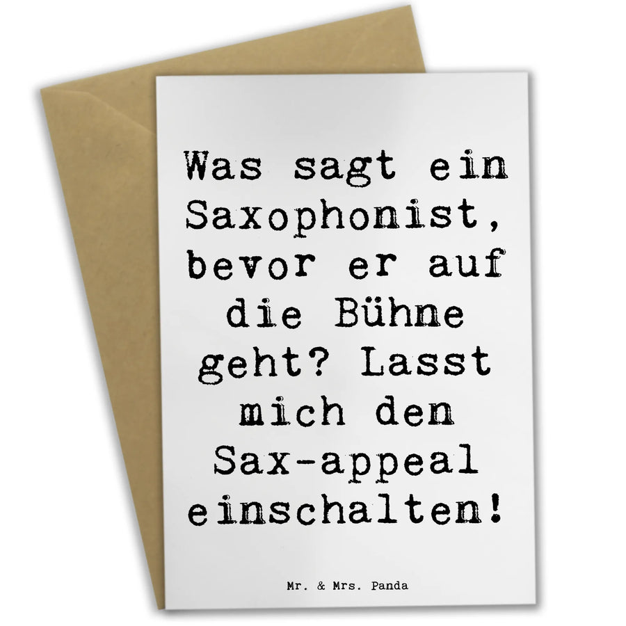 Die Grußkarte mit dem Motive eines SAXOPHONS von Mr. & Mrs. Panda ist das perfekte Geschenk für Musiker und Musikliebhaber. Mit ihrem witzigen Spruch "Was sagt ein Saxophonist, bevor er auf die Bühne geht? Lasst mich den Sax-appeal einschalten!" bringt diese Karte Freude und lässt das Herz jedes Saxophonisten höherschlagen.
