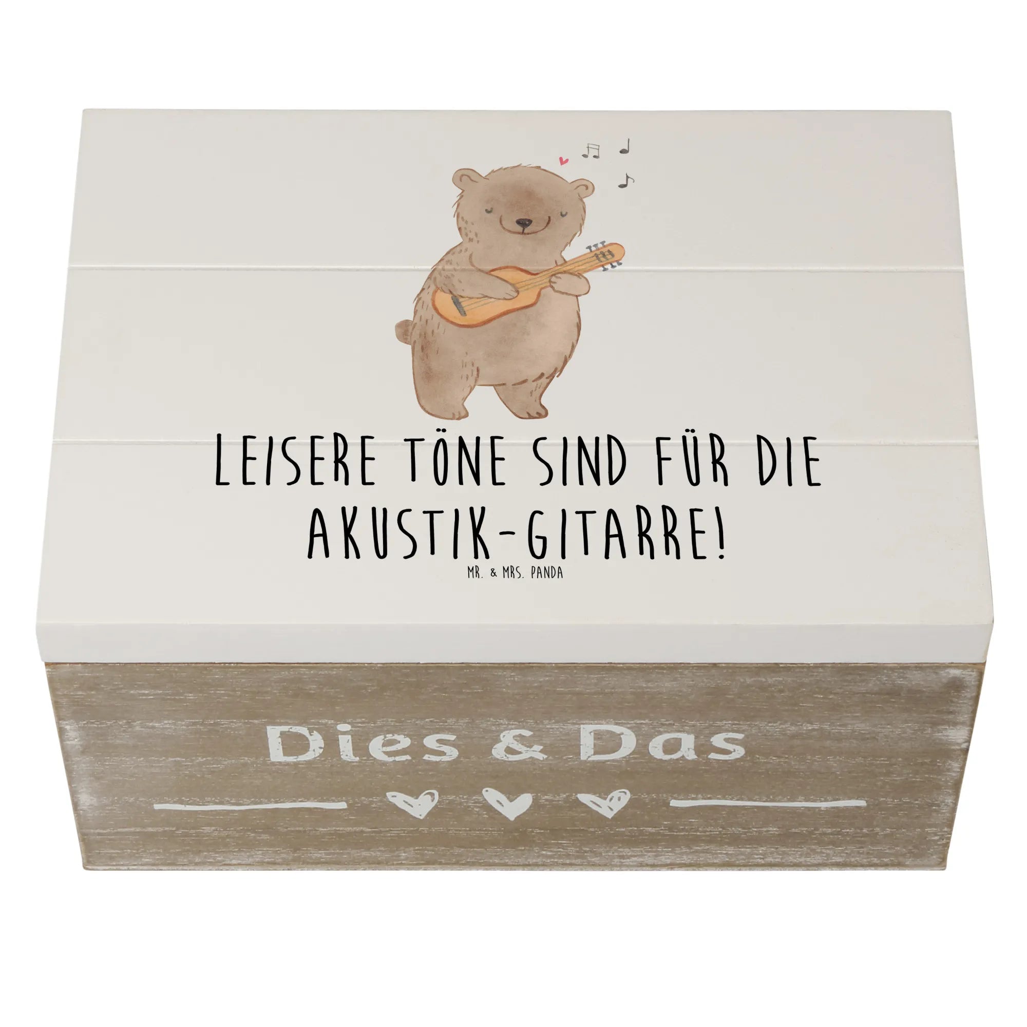 Der Slogan "Leisere Töne sind für die Akustik-Gitarre!" bringt die Leidenschaft für Musik perfekt zum Ausdruck und macht die Kiste zu einem besonderen Geschenk für Musiker und Musikliebhaber.