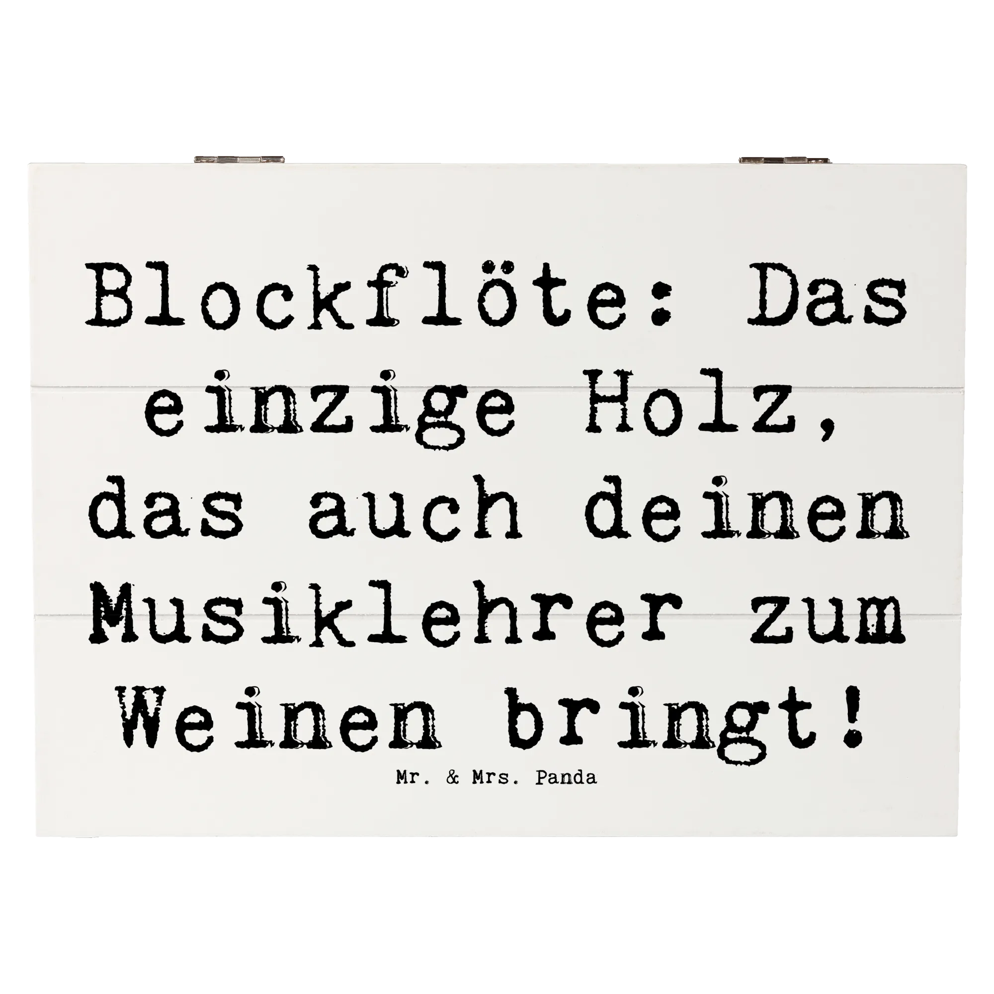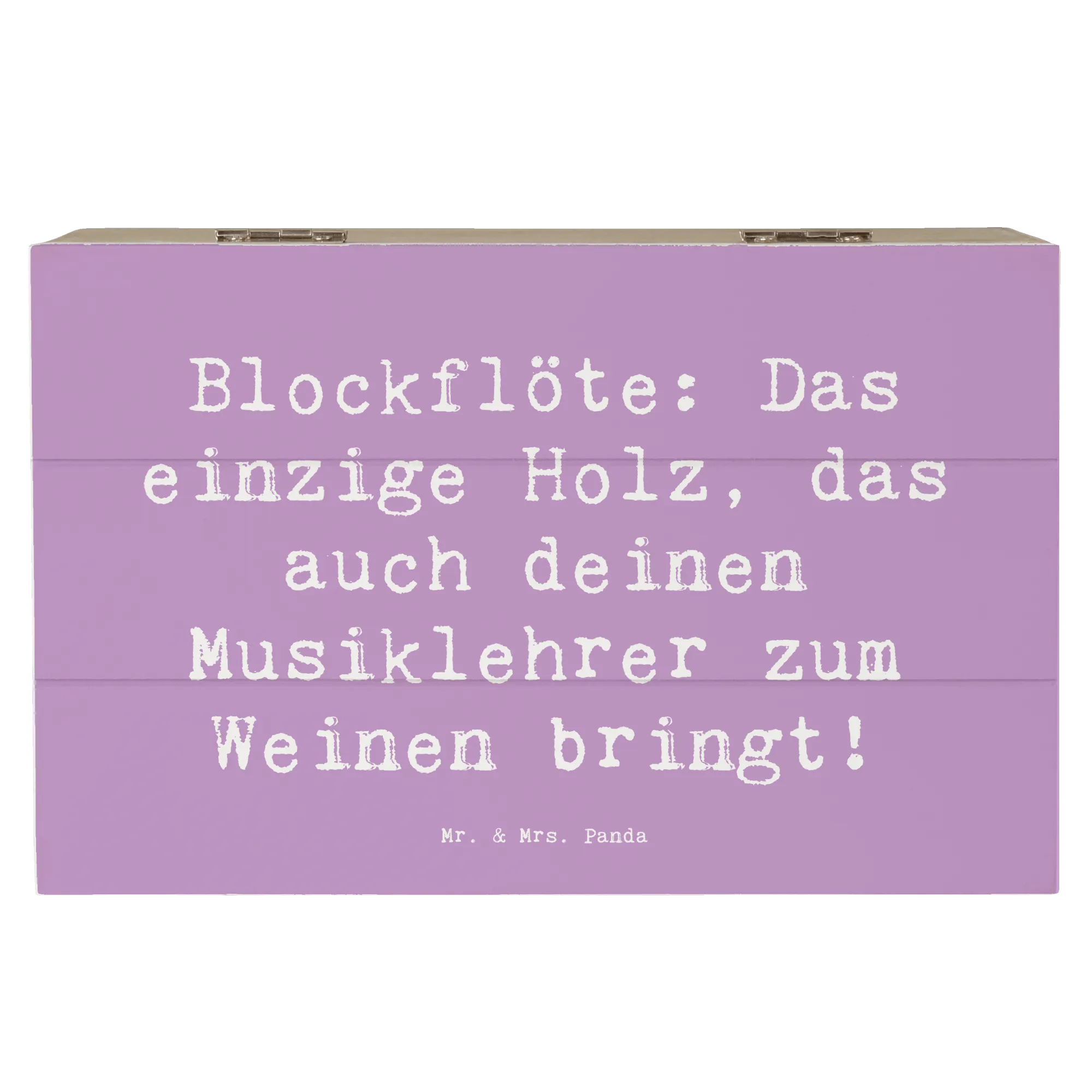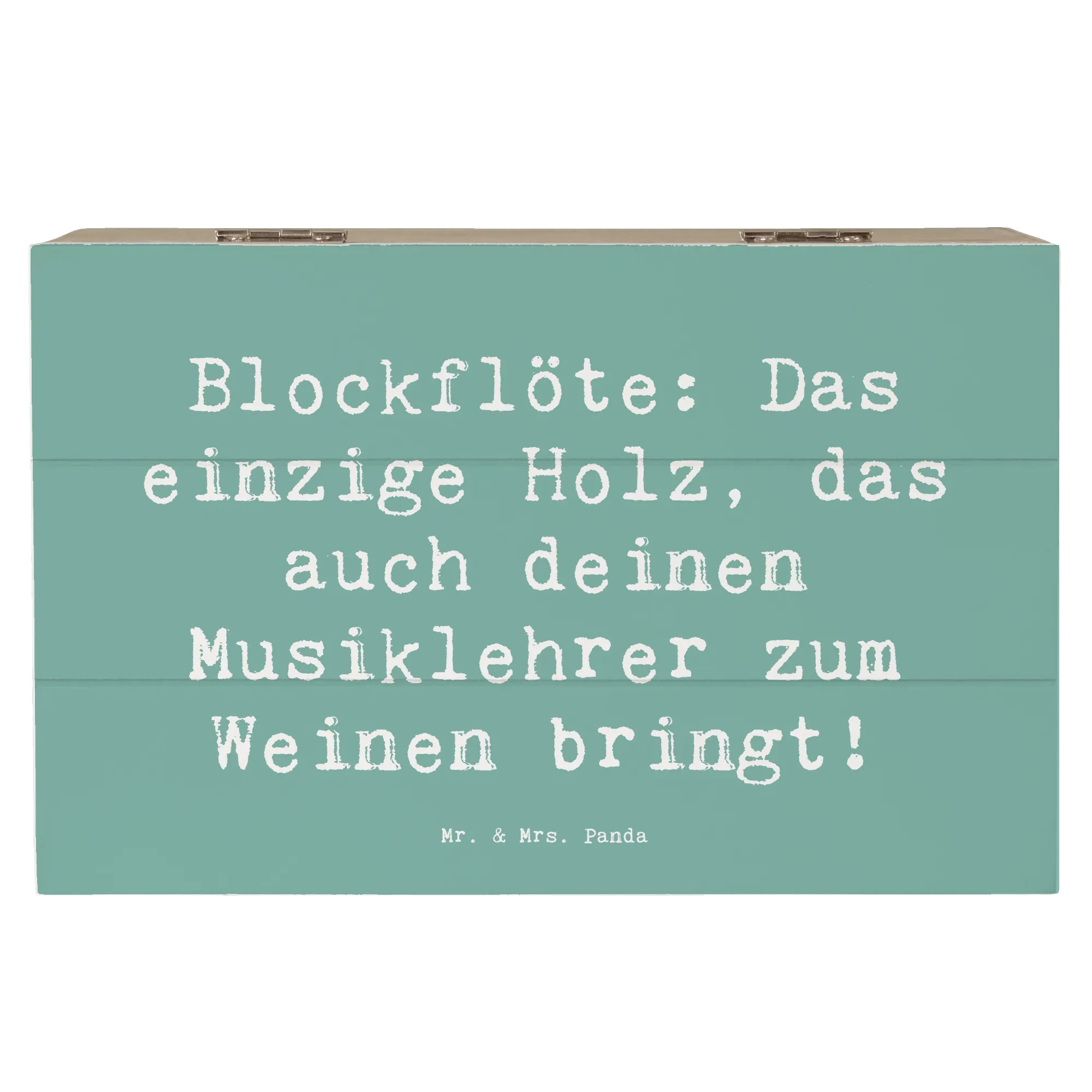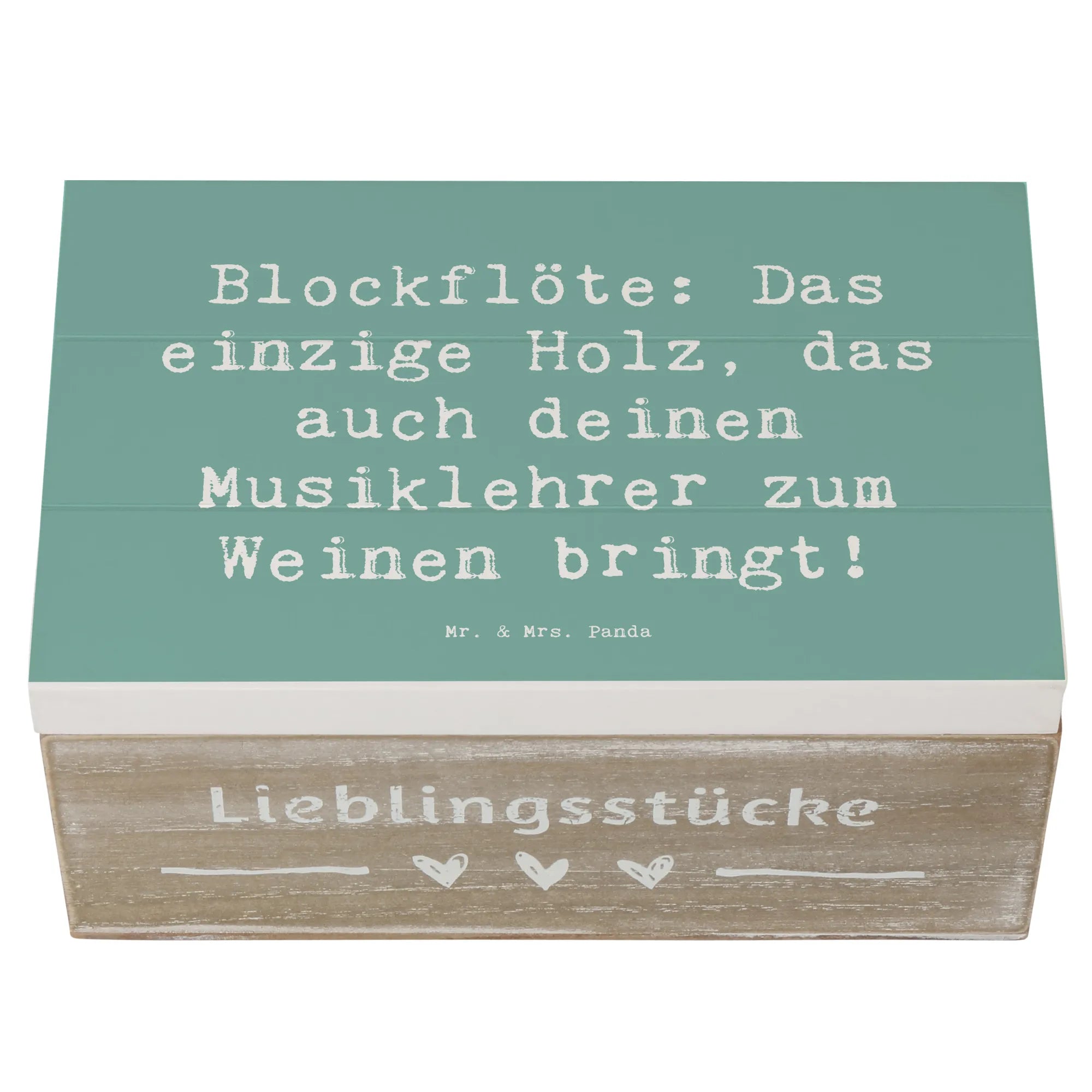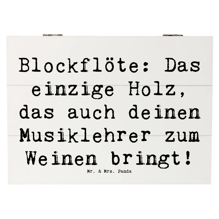 Entdecke die wundervolle Holzkiste von Mr. & Mrs. Panda mit dem einzigartigen Motiv "Blockflöte: Das einzige Holz, das auch deinen Musiklehrer zum Weinen bringt!" Diese Erinnerungskiste ist nicht nur ein praktischer Aufbewahrungsort für all deine Schätze, sondern auch ein liebevolles Geschenk für Musikliebhaber und angehende Musiker.