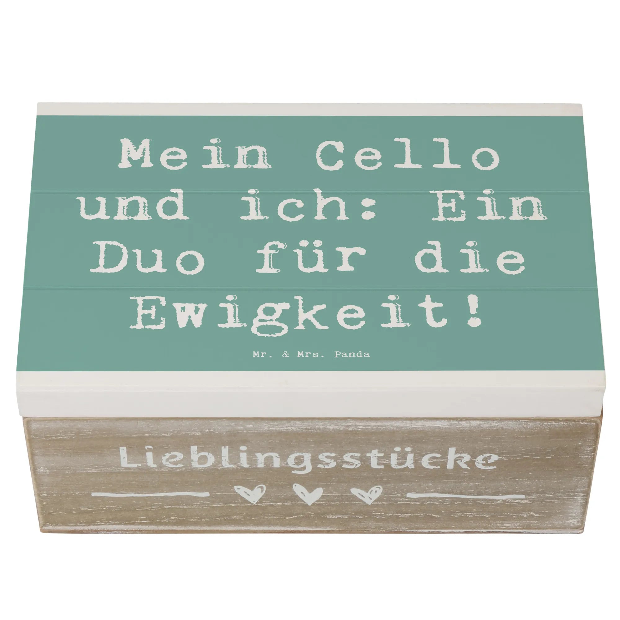 Der schicke Slogan "Mein Cello und ich: Ein Duo für die Ewigkeit!" bringt die Liebe zur Musik perfekt zum Ausdruck. Du kannst diese Kiste auch als nachhaltige Geschenkbox für besondere Anlässe verwenden und sie immer wieder für neue Erinnerungen nutzen.