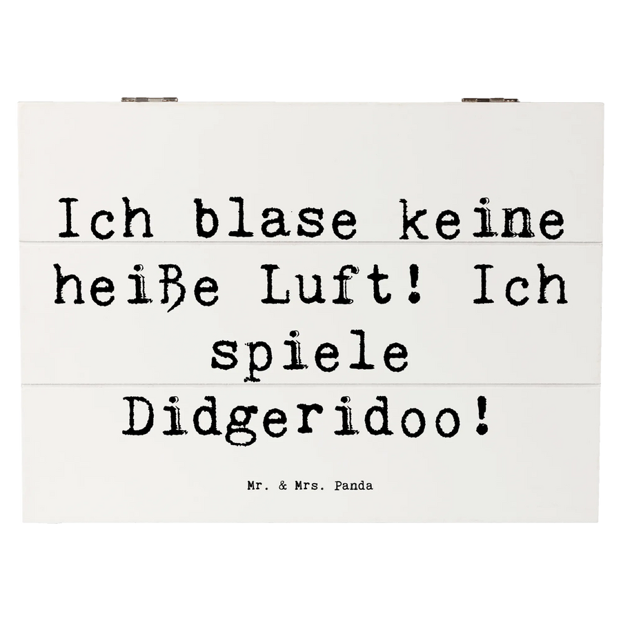 Unser didgeridoo-motiviertes Design wird alle Musiker und Kulturinteressierten begeistern. Wenn du ein Geschenk für einen Freund suchst, der ein Instrument lernt oder leidenschaftlicher Musiker ist, dann ist diese Kiste mit dem Slogan "Ich blase keine heiße Luft! Ich spiele Didgeridoo!" genau das Richtige! Sie wird als nachhaltige und wiederverwendbare Geschenkbox für besondere Anlässe geschätzt. Mit ihren stabilen Einschlagscharnieren lässt sie sich kinderleicht öffnen und schließen und schützt deine Schätze zuverlässig.