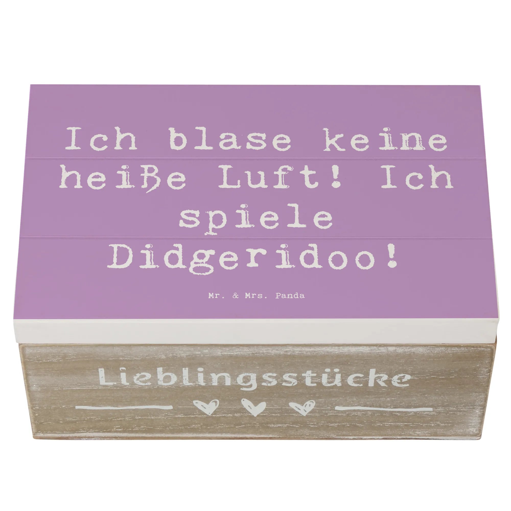 Mit der liebevollen Botschaft „Ich blase keine heiße Luft! Ich spiele Didgeridoo!“ erfreust Du sicher jeden Musikenthusiasten. Dank der robusten Holzfaser und der besonderen Stabilität ist diese Erinnerungskiste nicht nur praktisch, sondern auch ein echter Hingucker in jedem Raum.