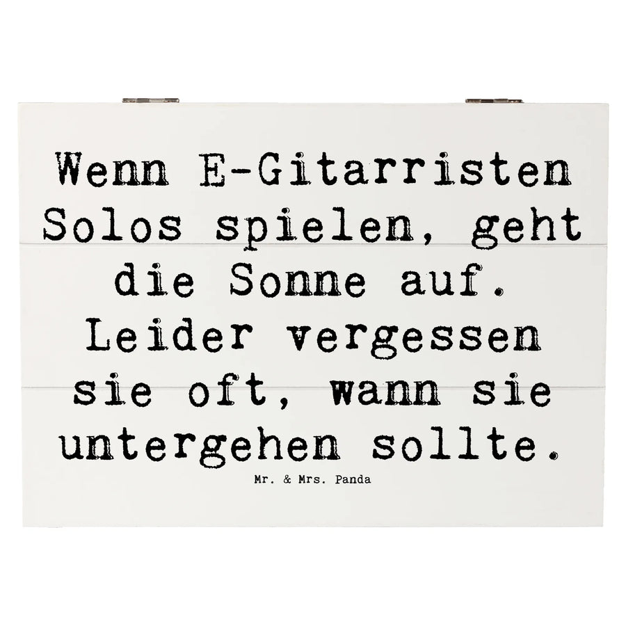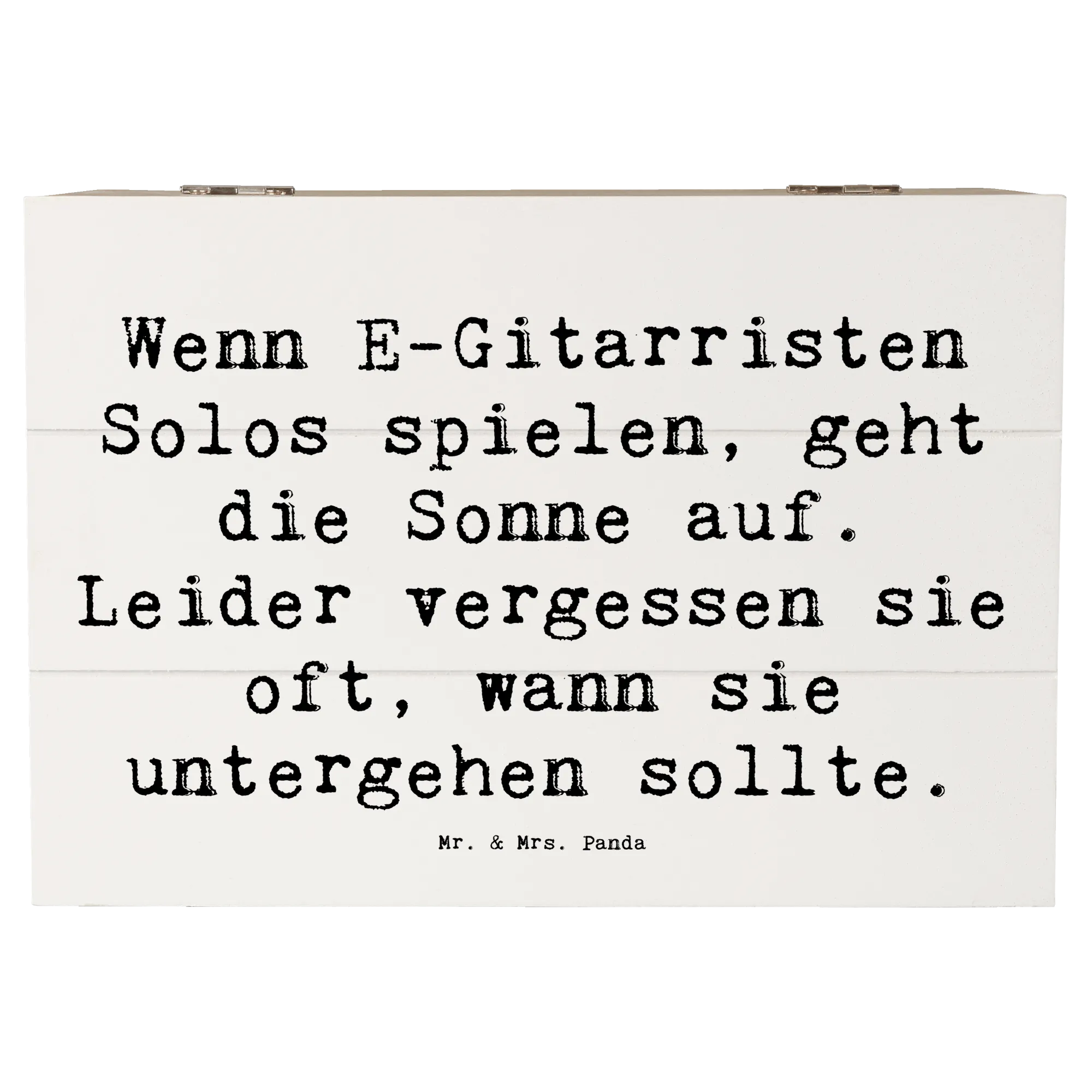 Die wunderschöne Holzkiste von Mr. & Mrs. Panda ist das perfekte Geschenk für alle E-Gitarristen und Musikliebhaber! 🎸 Sie ist nicht nur ein stilvolles Dekoelement, sondern auch eine funktionale Aufbewahrungsbox für all die wertvollen Erinnerungen, die du sammelst. Mit einem zeitlosen Motiv einer E-Gitarre und dem witzigen Spruch: "Wenn E-Gitarristen Solos spielen, geht die Sonne auf. Leider vergessen sie oft, wann sie untergehen sollte", wird diese Kiste zu einem Blickfang in jedem Raum.