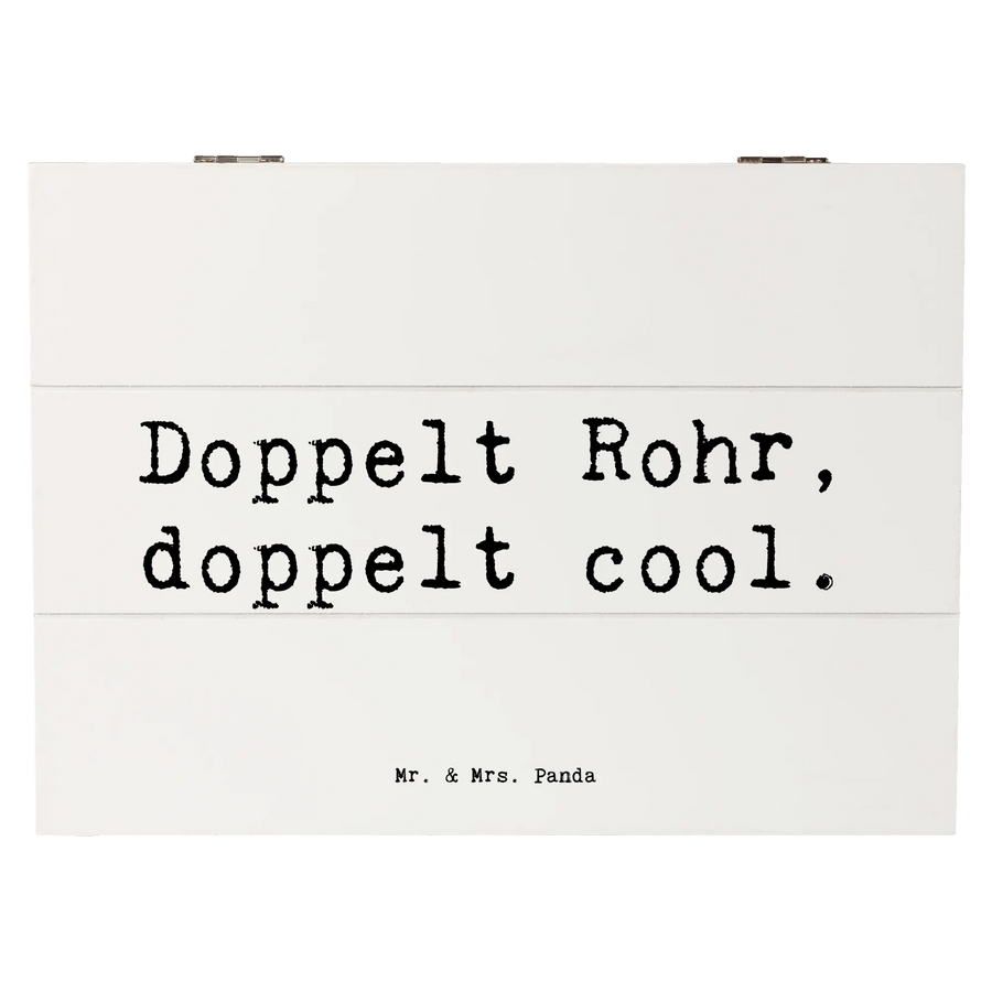 Die Holzkiste ist ideal als Dekokiste oder Aufbewahrungsbox, die Deine Erinnerungen stilvoll verwahrt. Ob für einen Musiker, einen Musikliebhaber oder auch für Kinder, die ein Instrument lernen möchten, wird diese Kiste das perfekte Geschenk sein. Sie trägt den charmanten Spruch "Doppelt Rohr, doppelt cool. " und zeigt damit die einzigartige Verbindung zur Musik und zu den Instrumenten.
