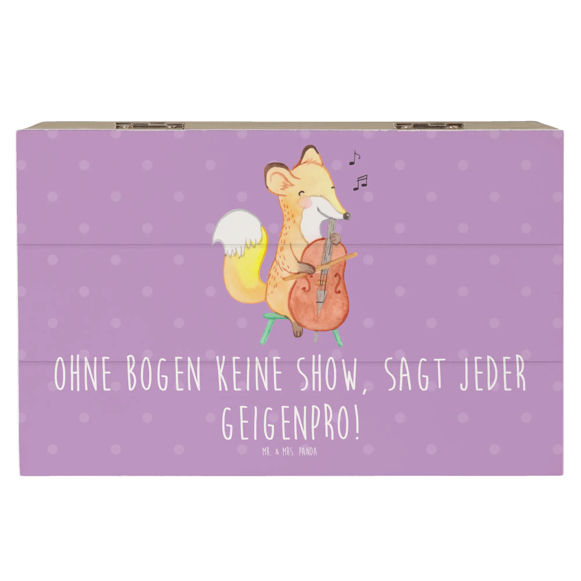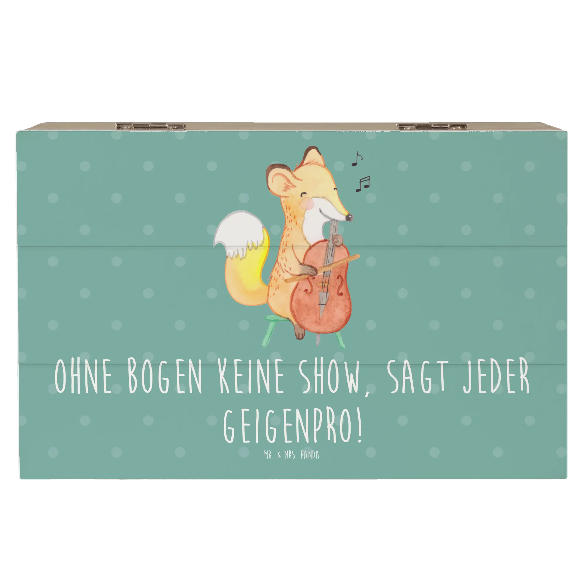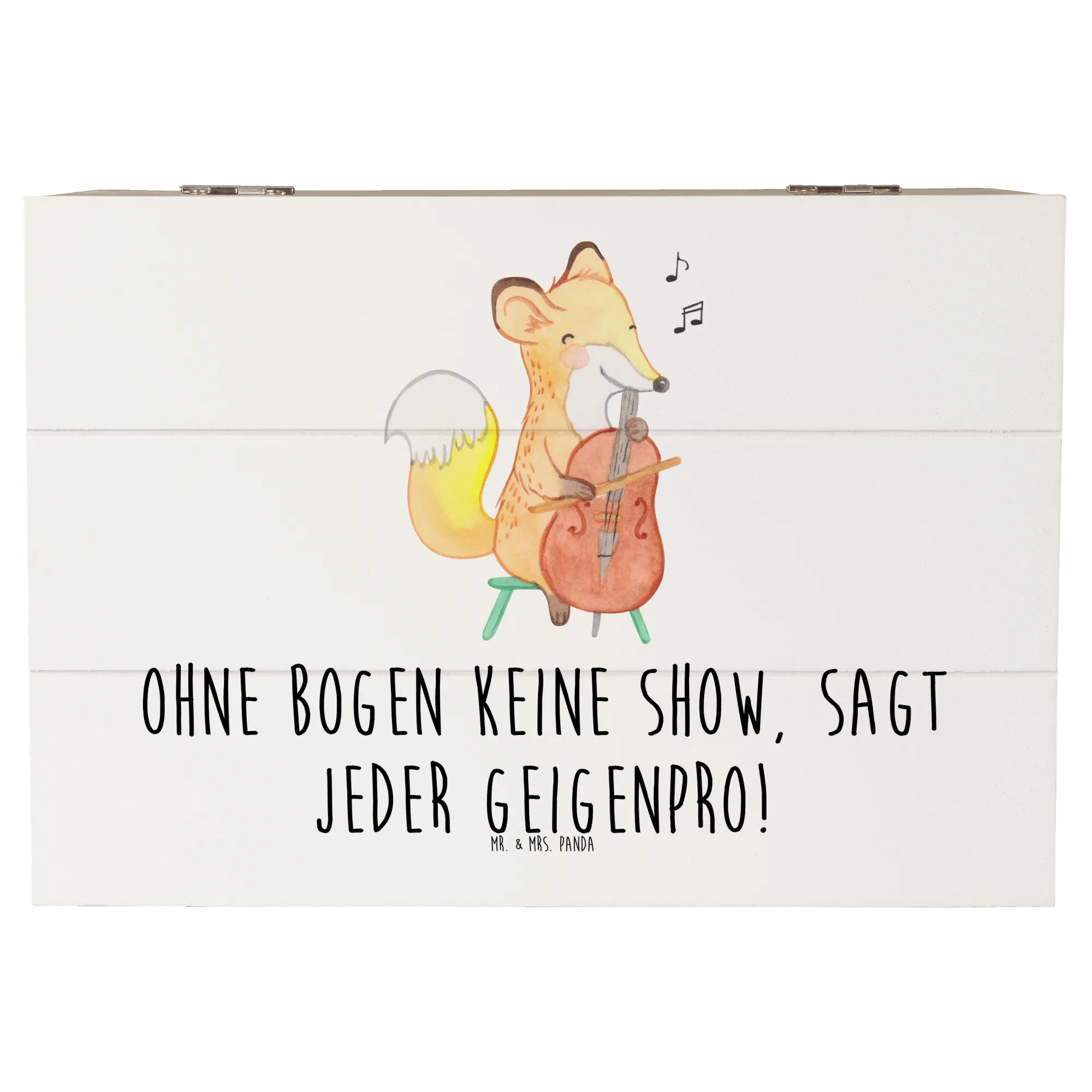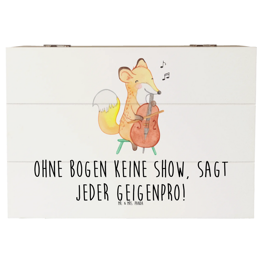Eine wunderschöne Holzkiste von Mr. & Mrs. Panda – speziell für alle Musikliebhaber und Geigenfreunde entworfen. Das zarte Geige-Motiv kombiniert mit dem frechen Spruch „Ohne Bogen keine Show, sagt jeder Geigenpro!“ macht diese Box zu einer besonders liebevollen Erinnerungskiste und Geschenkbox für Musiker, Musikschüler und kleine Streichinstrument-Fans.