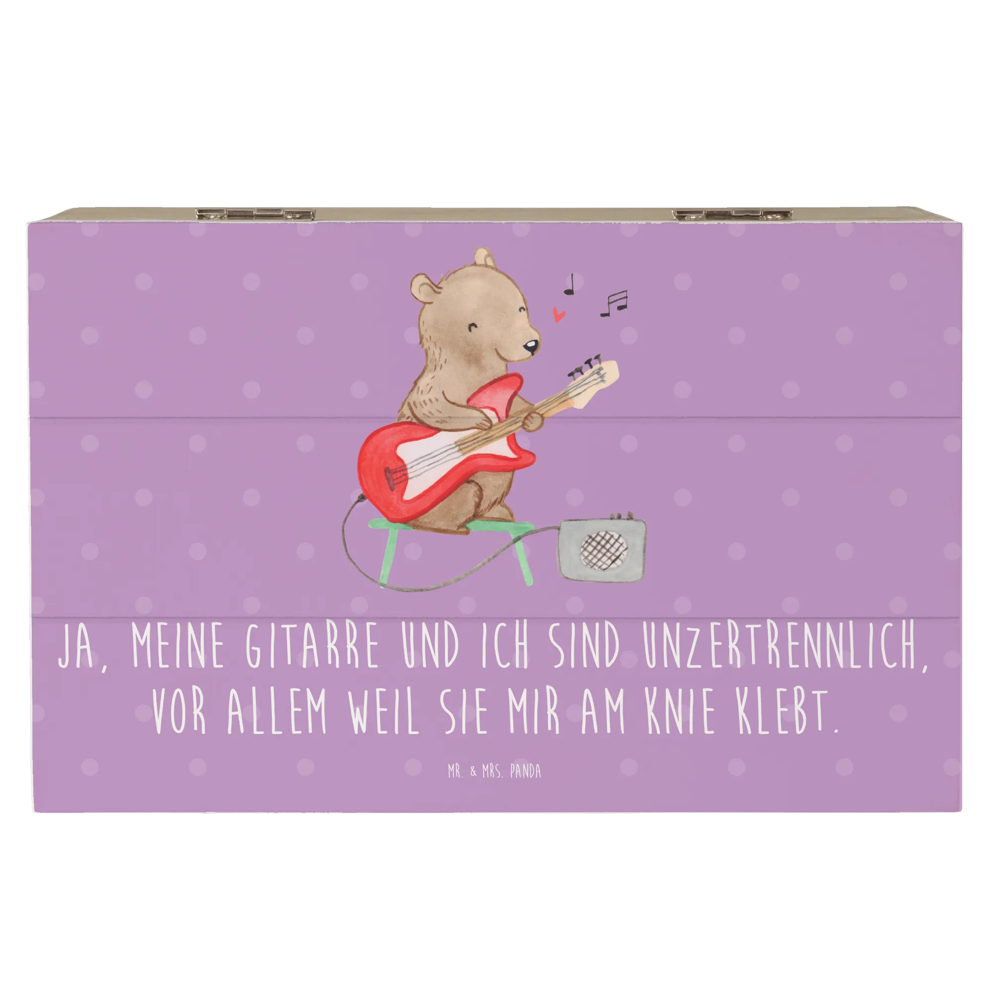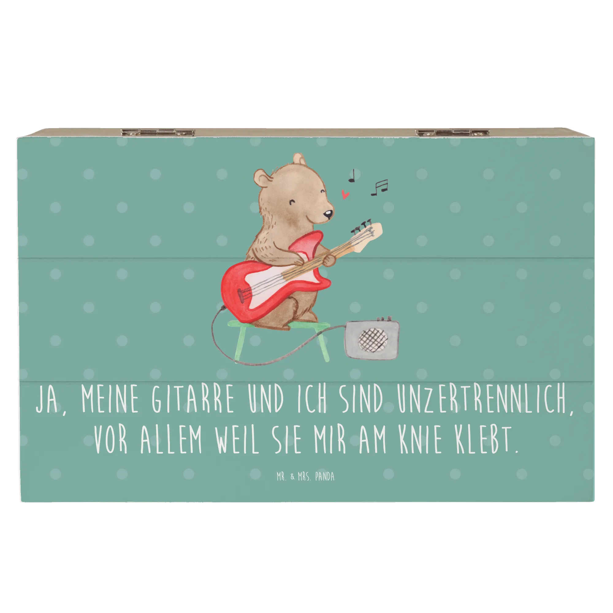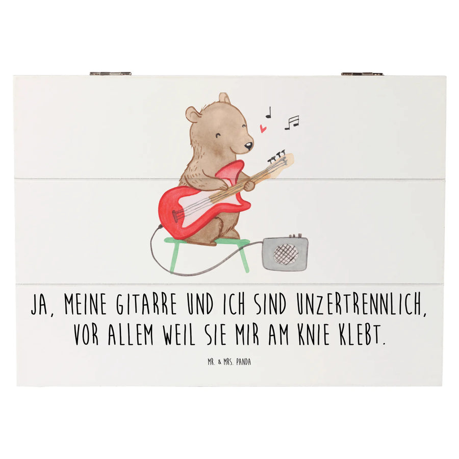 Die wunderschöne Holzkiste von Mr. & Mrs. Panda ist mehr als nur eine Aufbewahrungsbox – sie ist ein magischer Ort für all deine Schätze! Mit ihrem wunderschönen Motiv einer Gitarre und dem witzigen Spruch 'Ja, meine Gitarre und ich sind unzertrennlich, vor allem weil sie mir am Knie klebt' bringt sie Freude und einen Hauch von Musik in dein Leben.