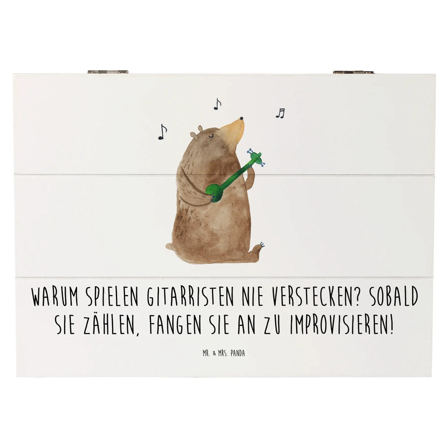 Die wunderschöne Holzkiste von Mr. & Mrs. Panda mit dem liebevollen Gitarre-Motiv aus der Kollektion "Musizieren & Instrumente" ist nicht nur ein praktischer Aufbewahrungsort für deine Schätze, sondern auch ein ganz besonderes Geschenk für alle Musikliebhaber und Gitarristen.