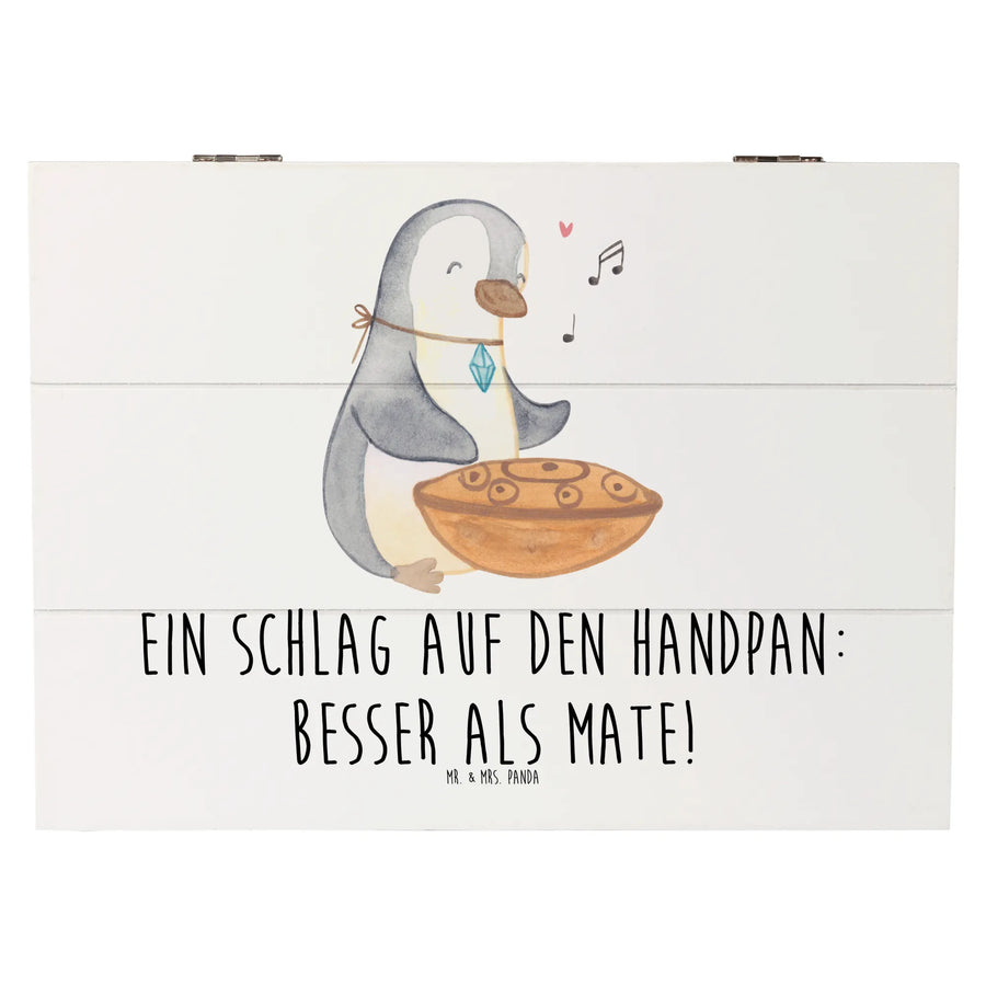 Die wunderschöne Holzkiste von Mr. & Mrs. Panda mit dem einzigartigen Handpan-Motiv ist der perfekte Begleiter für alle Musikliebhaber und Entspannungsfreunde. Mit einem Slogan, der das Herz berührt: "Ein Schlag auf den Handpan: besser als Mate!" Inspiriert von der sanften Melodie und der hypnotischen Wirkung der Handpan, wird diese Kiste zu einem besonderen Ort, an dem Du Deine wertvollsten Erinnerungen und Schätze aufbewahren kannst.