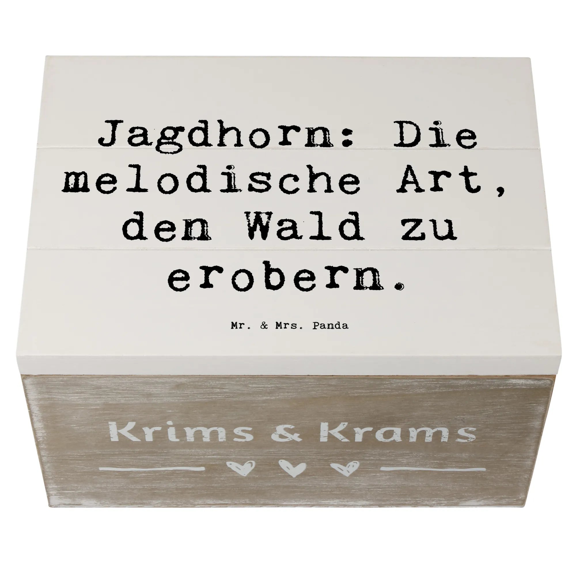 Die robuste Holzfaser sorgt dafür, dass die Kiste nicht nur toll aussieht, sondern auch besonders stabil und langlebig ist. Mit einem ansprechenden Design und dem Spruch "Jagdhorn: Die melodische Art, den Wald zu erobern" bringt sie ein bisschen Natur und traditionelle Klangwelt in jeden Raum.
