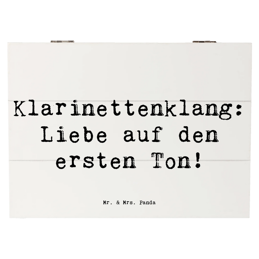 Die wunderschöne Holzkiste von Mr. & Mrs. Panda ist das perfekte Geschenk für alle Musikliebhaber und Klarinettenspieler. Mit ihrem einzigartigen Design, das mit dem originellen Spruch "Klarinettenklang: Liebe auf den ersten Ton!" verziert ist, bringt die Kiste eine besondere Note in jedes Zuhause.
