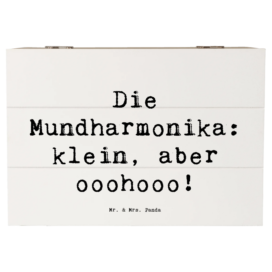 Entdecke die zauberhafte Holzkiste mit dem Motiv Mundharmonika von Mr. & Mrs. Panda! Diese liebevoll gestaltete Erinnerungskiste fasst all deine besonderen Momente und Schätze zusammen, sei es die erste Mundharmonika, die du erhalten hast, oder die schönsten Fotos deiner Kindheit. Diese Kiste ist nicht nur robust aus hochwertiger Holzfaser gefertigt, sondern auch ein echter Hingucker in deinem Leben oder dem eines geliebten Musikfreundes.
