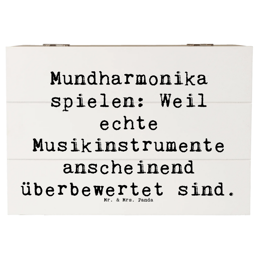 Holzkiste Spruch Mundharmonika spielen: Weil echte Musikinstrumente anscheinend überbewertet sind. - 22 x 15 cm - Weiß