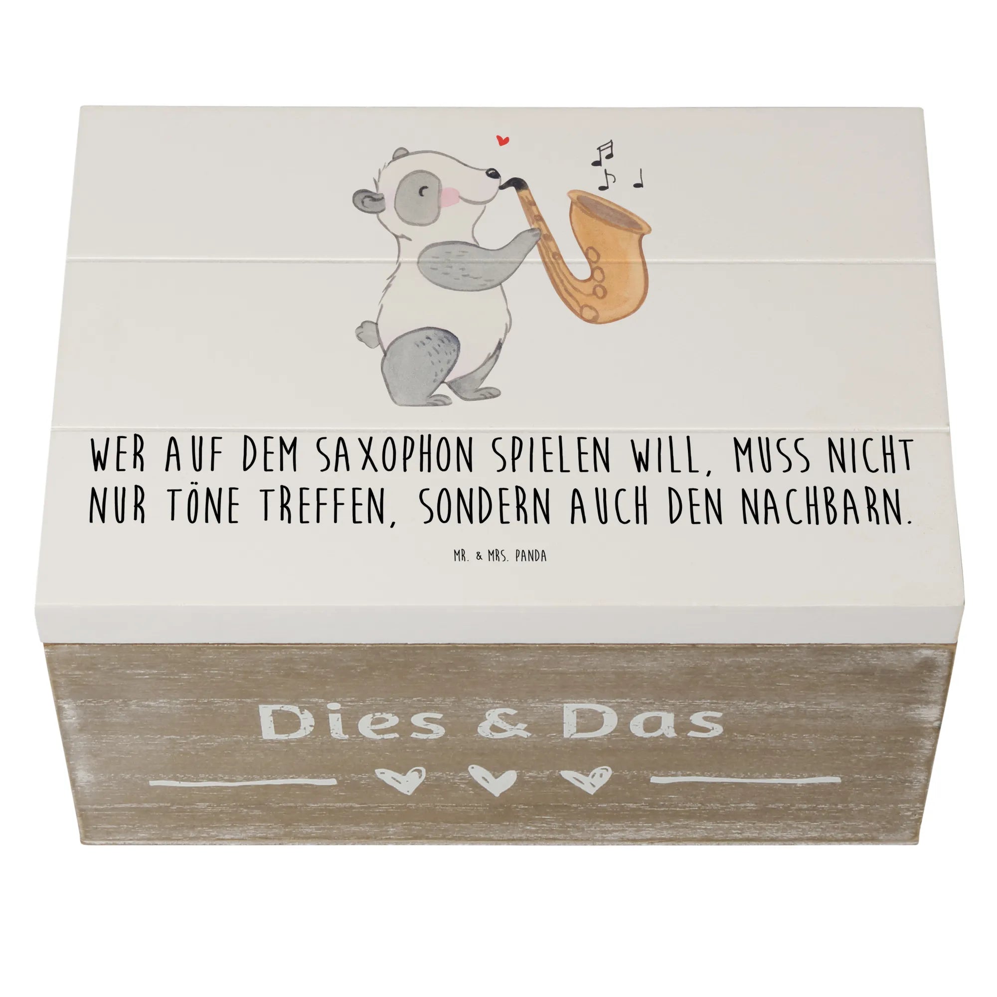 Die wunderschöne Holzkiste von Mr. & Mrs. Panda ist das ideale Geschenk für alle Musikliebhaber und angehenden Musiker! Mit dem charmanten Motiv eines Saxophons und dem witzigen Spruch 'Wer auf dem Saxophon spielen will, muss nicht nur Töne treffen, sondern auch den Nachbarn.' ist diese Kiste nicht nur praktisch, sondern auch ein echter Hingucker.