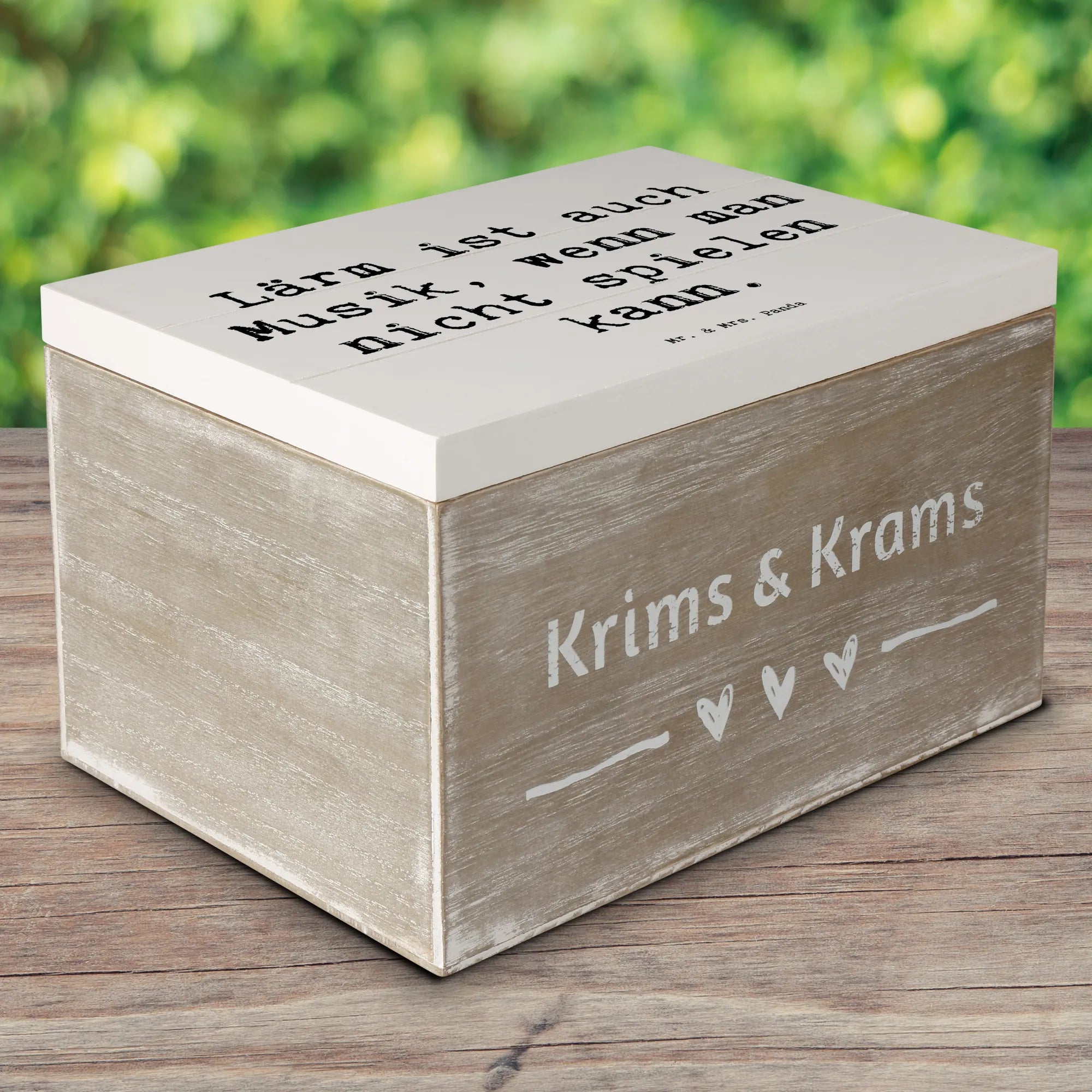 Der Spruch „Lärm ist auch Musik, wenn man nicht spielen kann.“ macht diese Kiste zu einem einzigartigen und humorvollen Geschenk für jeden Musiker oder Musikfan. Es ist eine besonders schöne Art, die Liebe zur Musik zu zeigen, und gleichzeitig eine nostalgische Note zu verleihen. Diese Dekokiste kann auch wunderbar als nachhaltige Geschenkbox verwendet werden. Packe deine Geschenke darin ein und erfreue die Herzen deiner Liebsten!