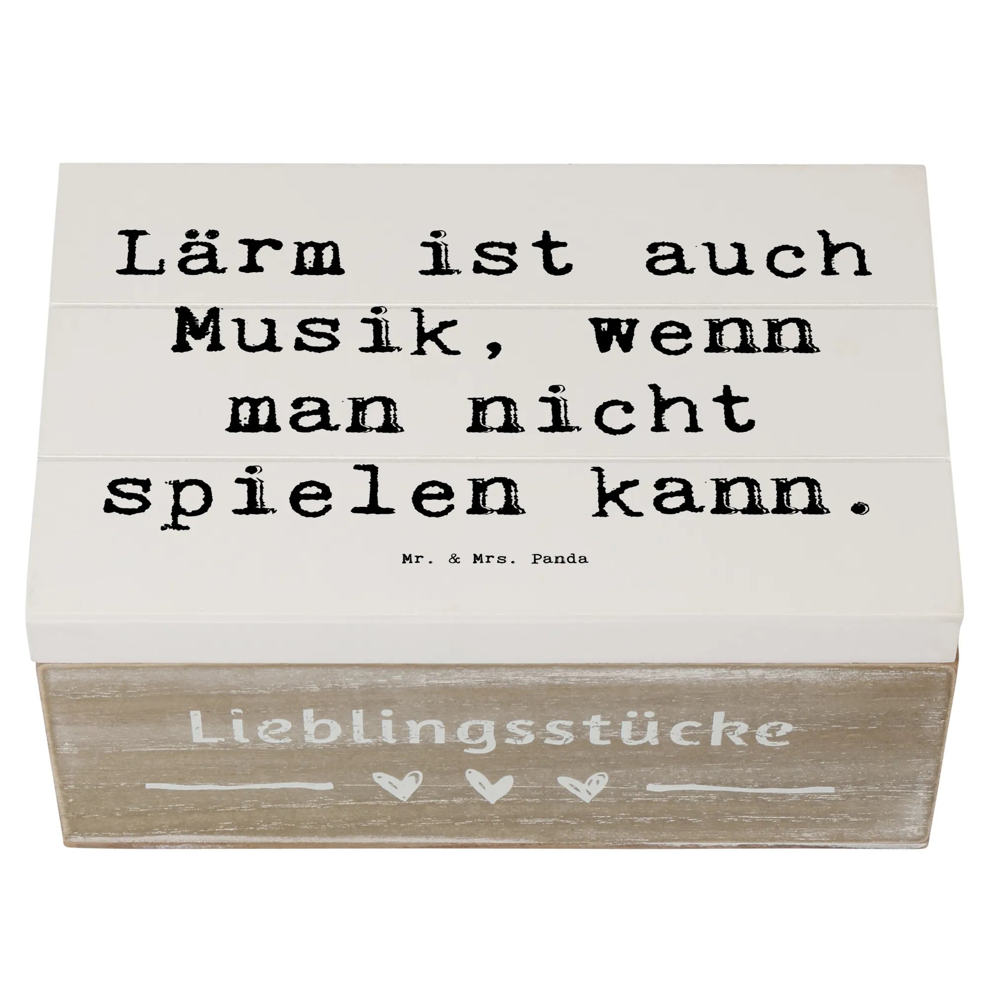 Die Kiste hat eingebaute Einschlagscharniere, die das Öffnen und Schließen zum Kinderspiel machen. Egal, ob du sie selbst verwenden oder jemandem schenken möchtest – mit dem Spruch 'Lärm ist auch Musik, wenn man nicht spielen kann.' wird sie garantiert zum Hit bei Musikfreunden. 🎶