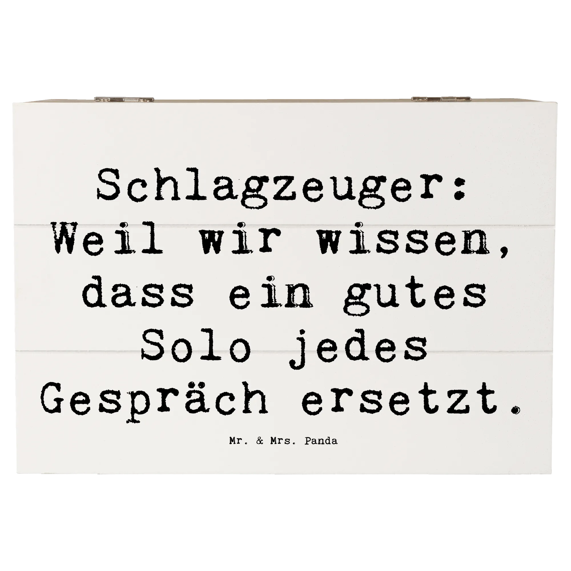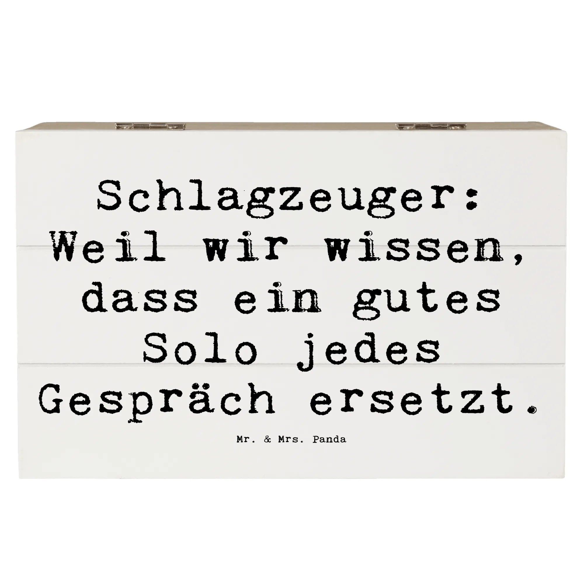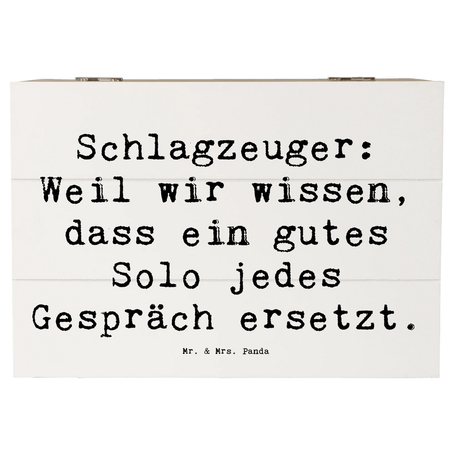 Die wunderschöne Holzkiste von Mr. & Mrs. Panda ist das perfekte Geschenk für alle Musikliebhaber, insbesondere für Schlagzeuger und Drummer. Diese bezaubernde Kiste ist nicht nur mit einem beeindruckenden Schlagzeug-Motiv versehen, sondern auch mit dem witzigen Spruch: 'Schlagzeuger: Weil wir wissen, dass ein gutes Solo jedes Gespräch ersetzt.'