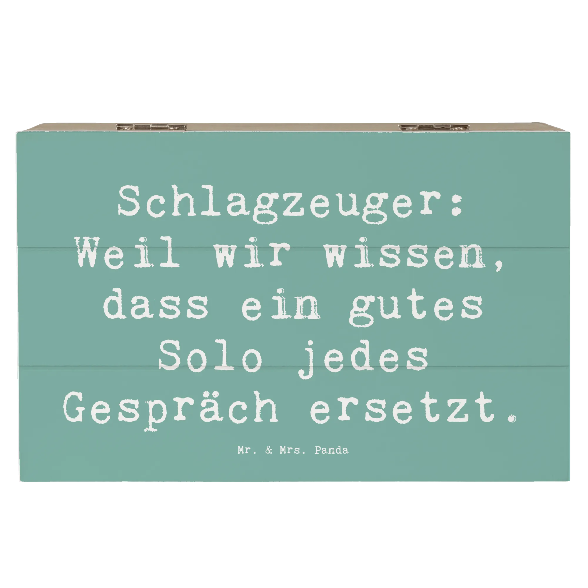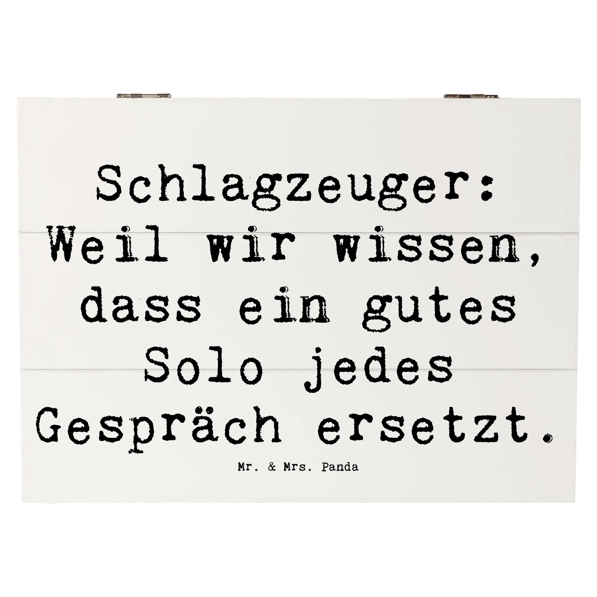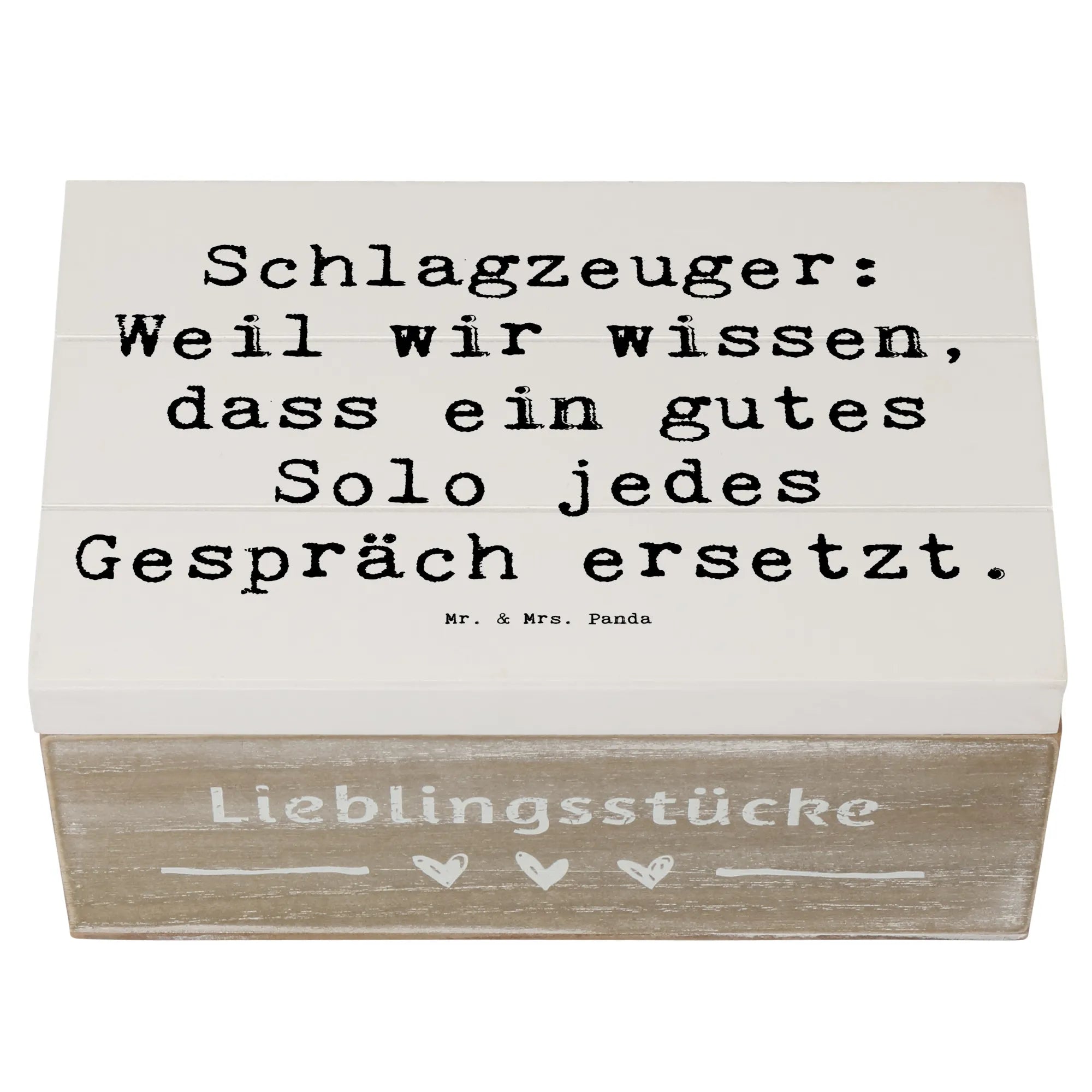 Die wunderschöne Holzkiste von Mr. & Mrs. Panda ist das perfekte Geschenk für alle Musikliebhaber, insbesondere für Schlagzeuger und Drummer. Diese bezaubernde Kiste ist nicht nur mit einem beeindruckenden Schlagzeug-Motiv versehen, sondern auch mit dem witzigen Spruch: 'Schlagzeuger: Weil wir wissen, dass ein gutes Solo jedes Gespräch ersetzt.'