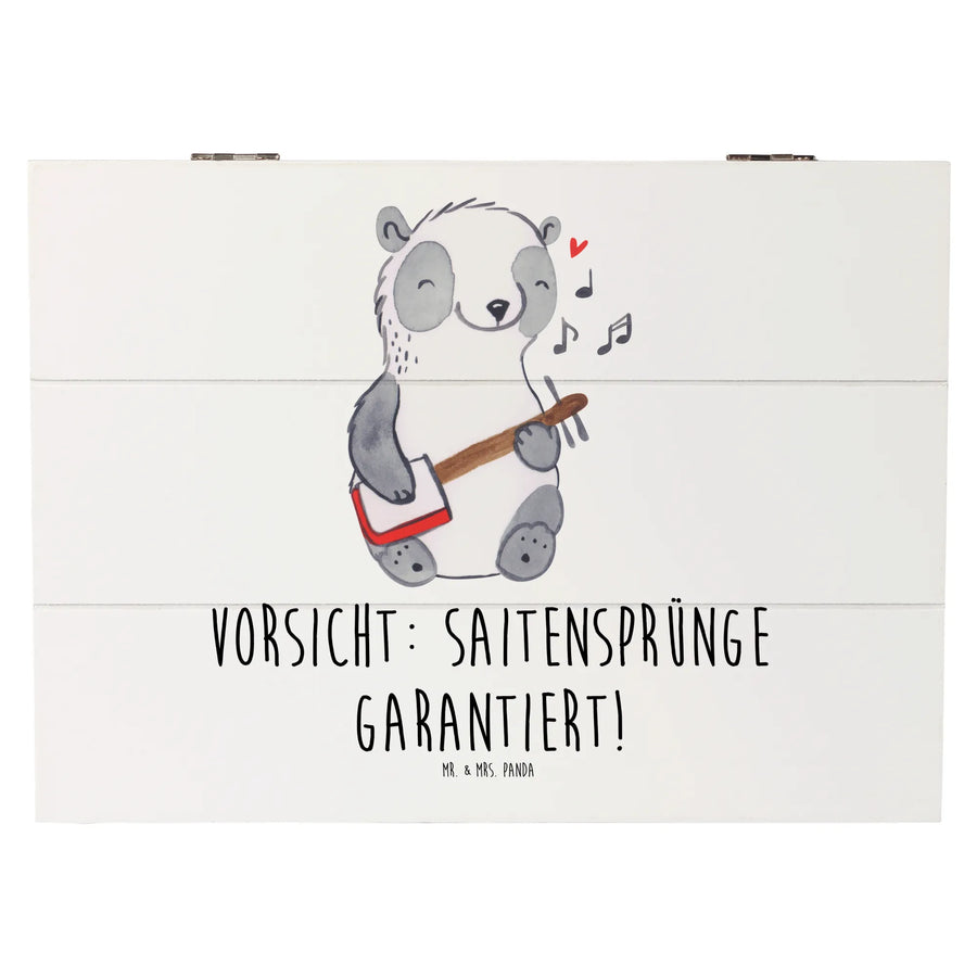 Besonders toll ist, dass diese Kiste auch als nachhaltige Geschenkbox genutzt werden kann – ideal für Anlässe wie Kommunion, Konfirmation oder als nostalgische Erinnerungskiste für besondere Momente. Mit dem witzigen Slogan "Vorsicht: Saitensprünge garantiert!" wird diese Kiste zu einem besonderen Geschenk für Musikliebhaber und alle, die das Musizieren lieben.