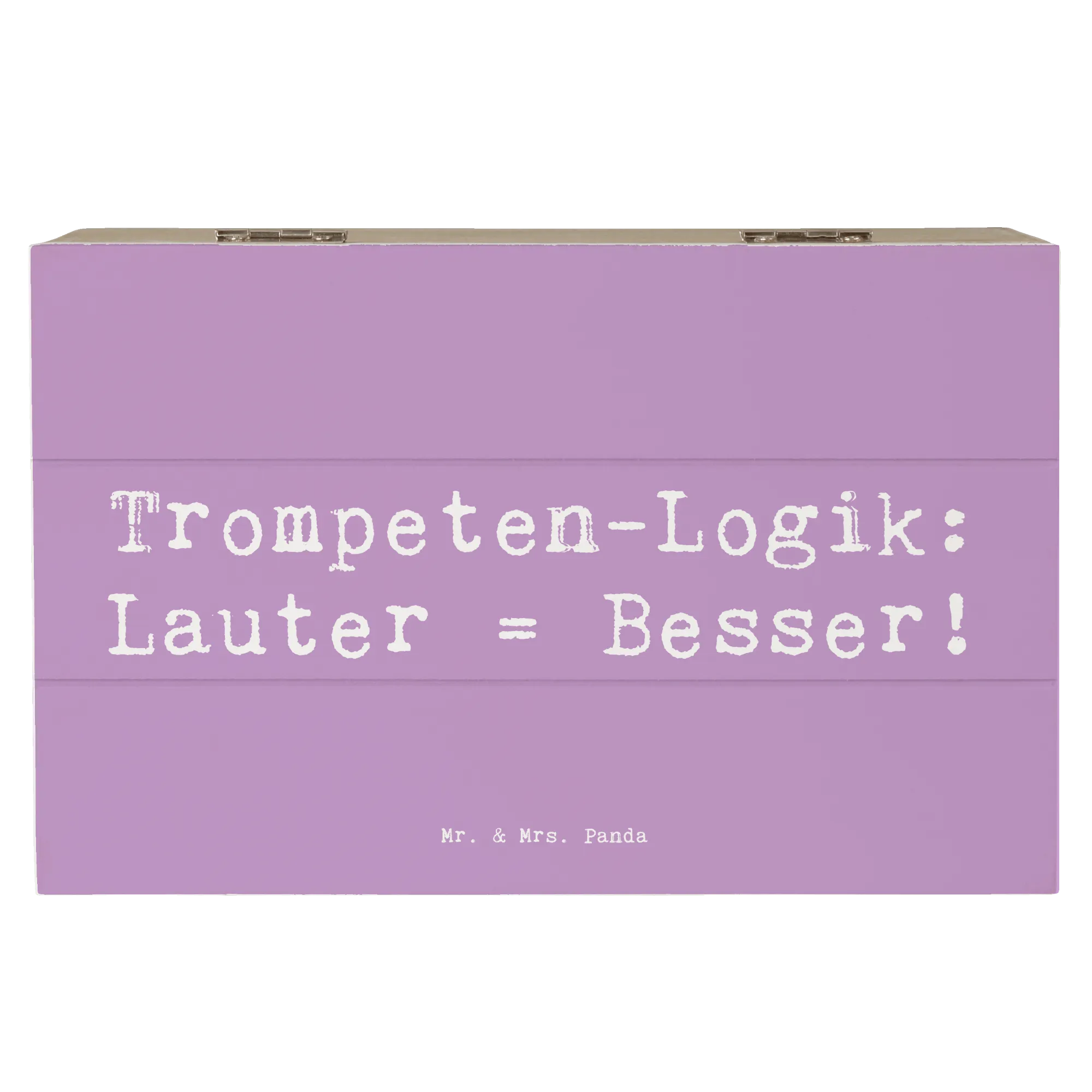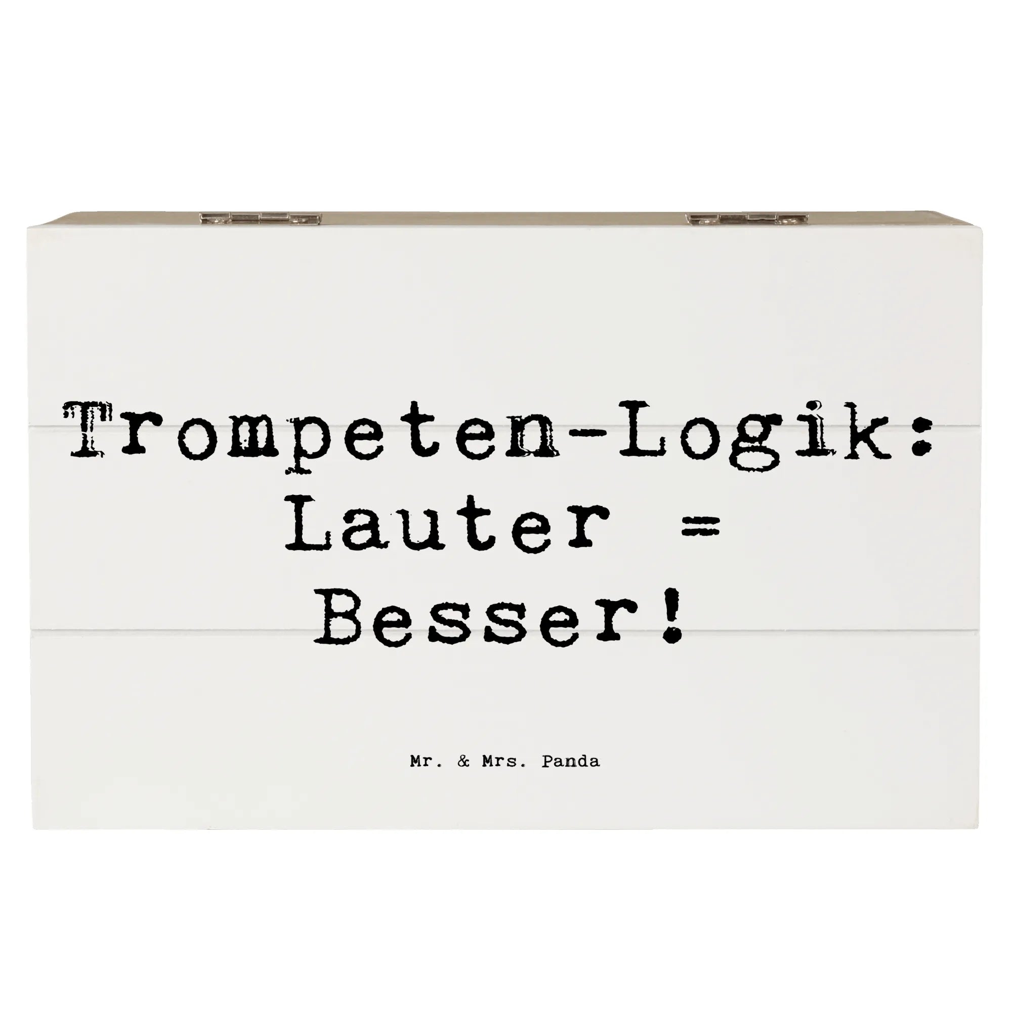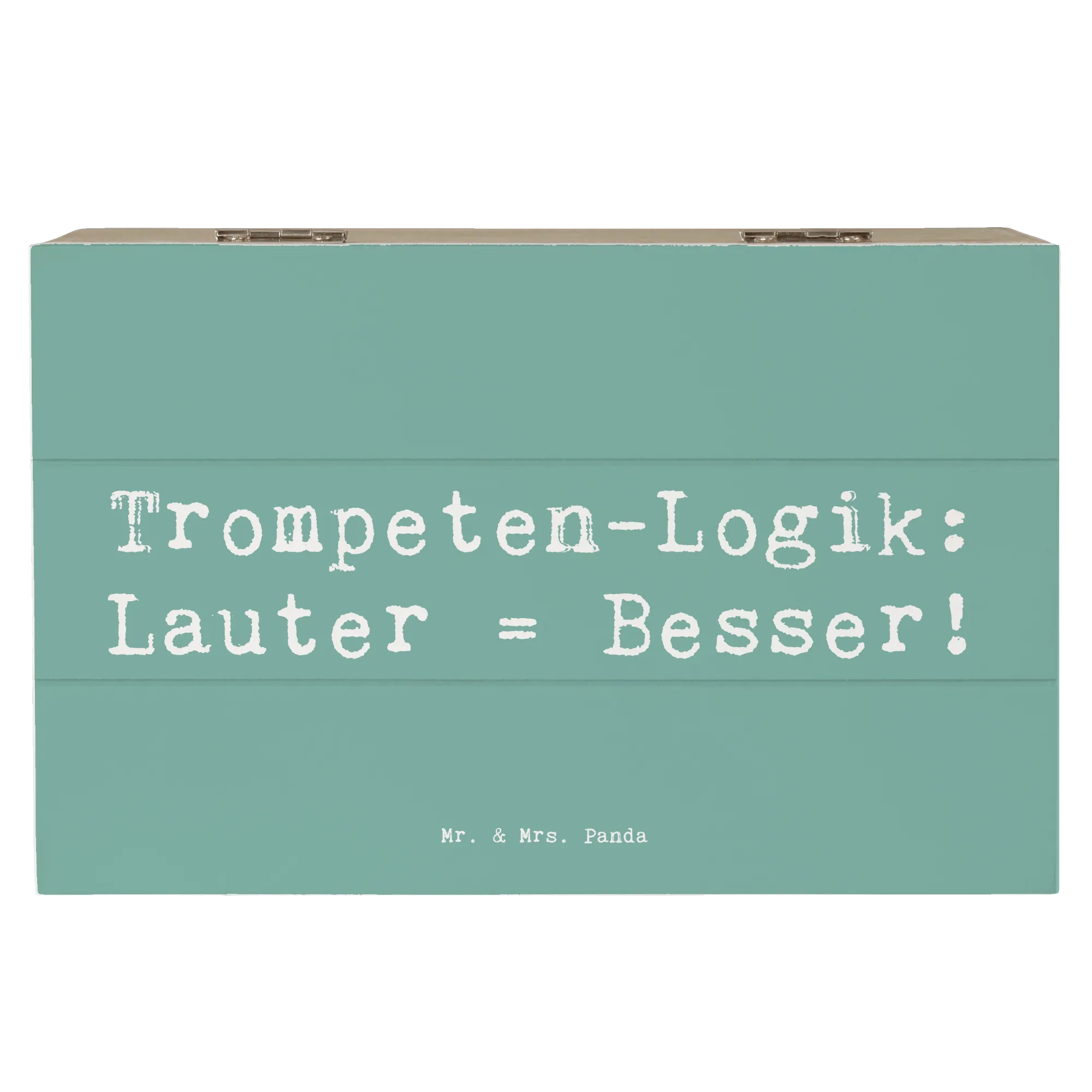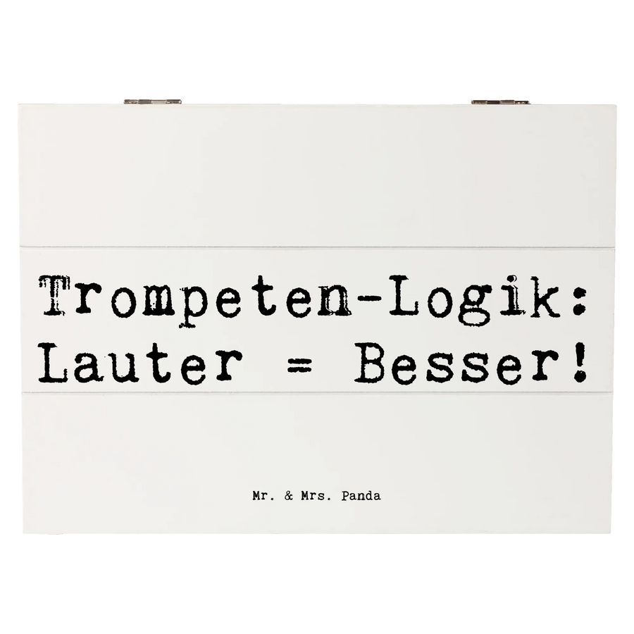 Die wunderschöne Holzkiste von Mr. & Mrs. Panda ist ein ganz besonderes Geschenk für Musikliebhaber und kleine Trompetenhelden! Mit einem fröhlichen Trompetenmotiv und dem witzigen Spruch "Trompeten-Logik: Lauter = Besser!" zaubert sie ein Lächeln auf jedes Gesicht.