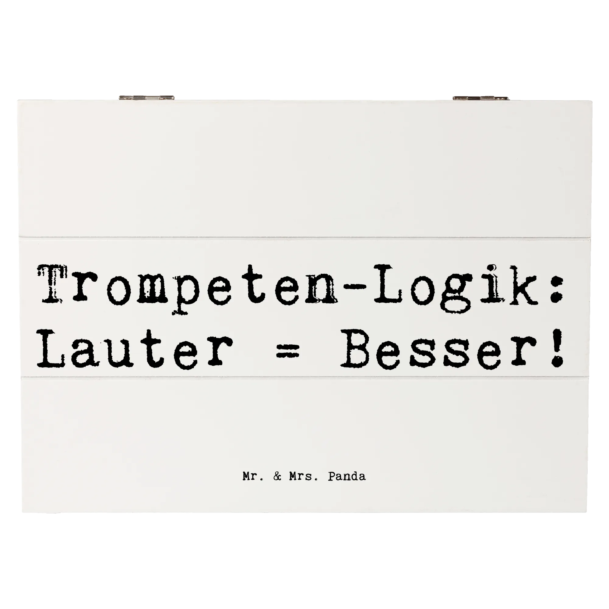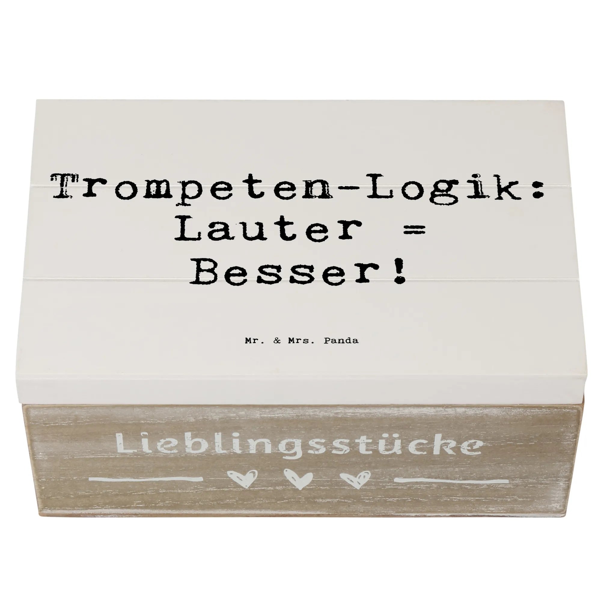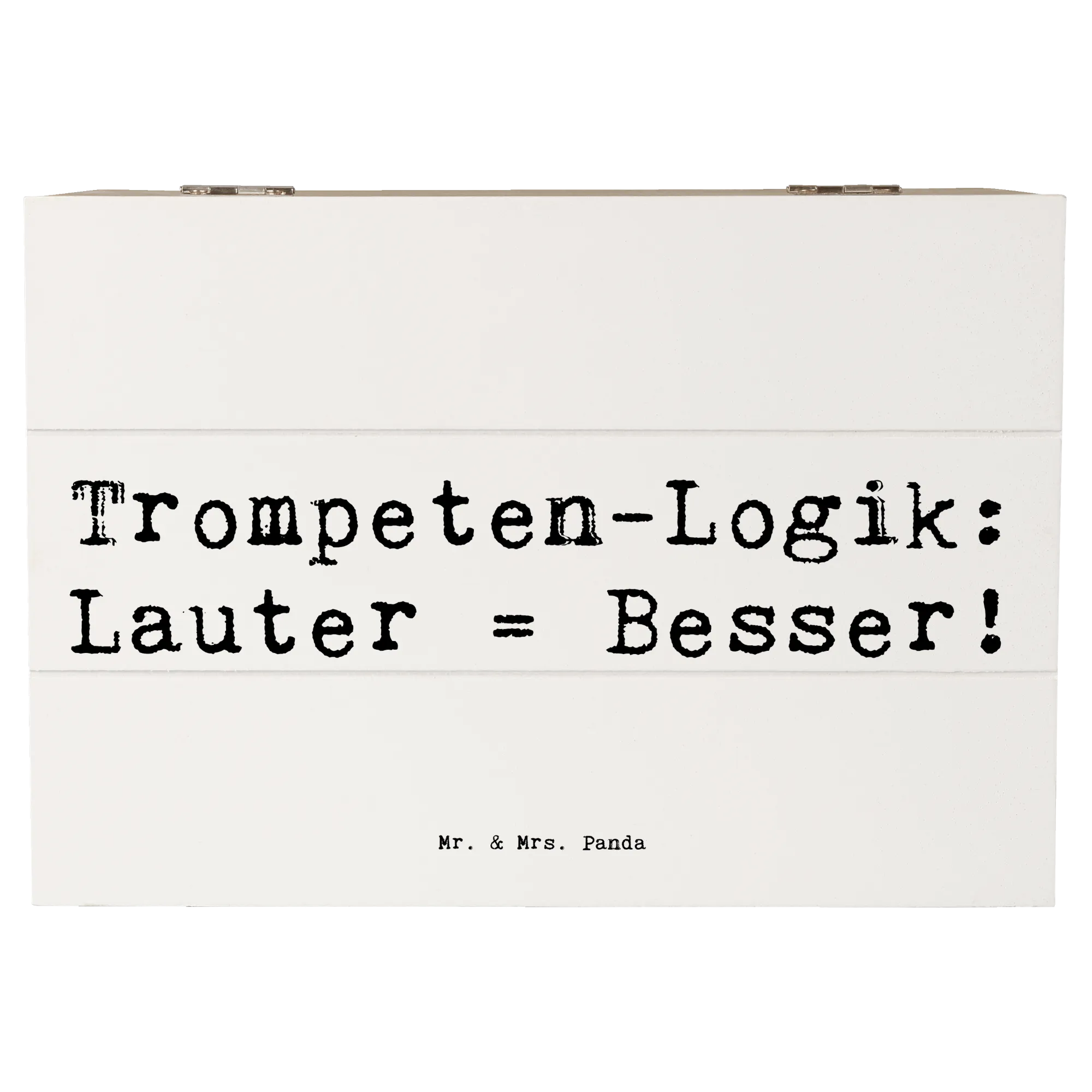 Die wunderschöne Holzkiste von Mr. & Mrs. Panda ist ein ganz besonderes Geschenk für Musikliebhaber und kleine Trompetenhelden! Mit einem fröhlichen Trompetenmotiv und dem witzigen Spruch "Trompeten-Logik: Lauter = Besser!" zaubert sie ein Lächeln auf jedes Gesicht.