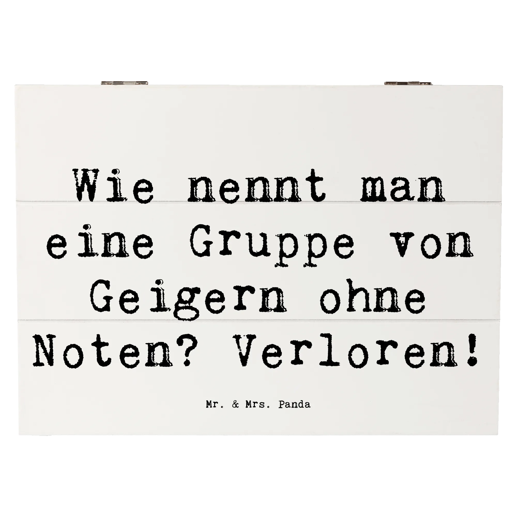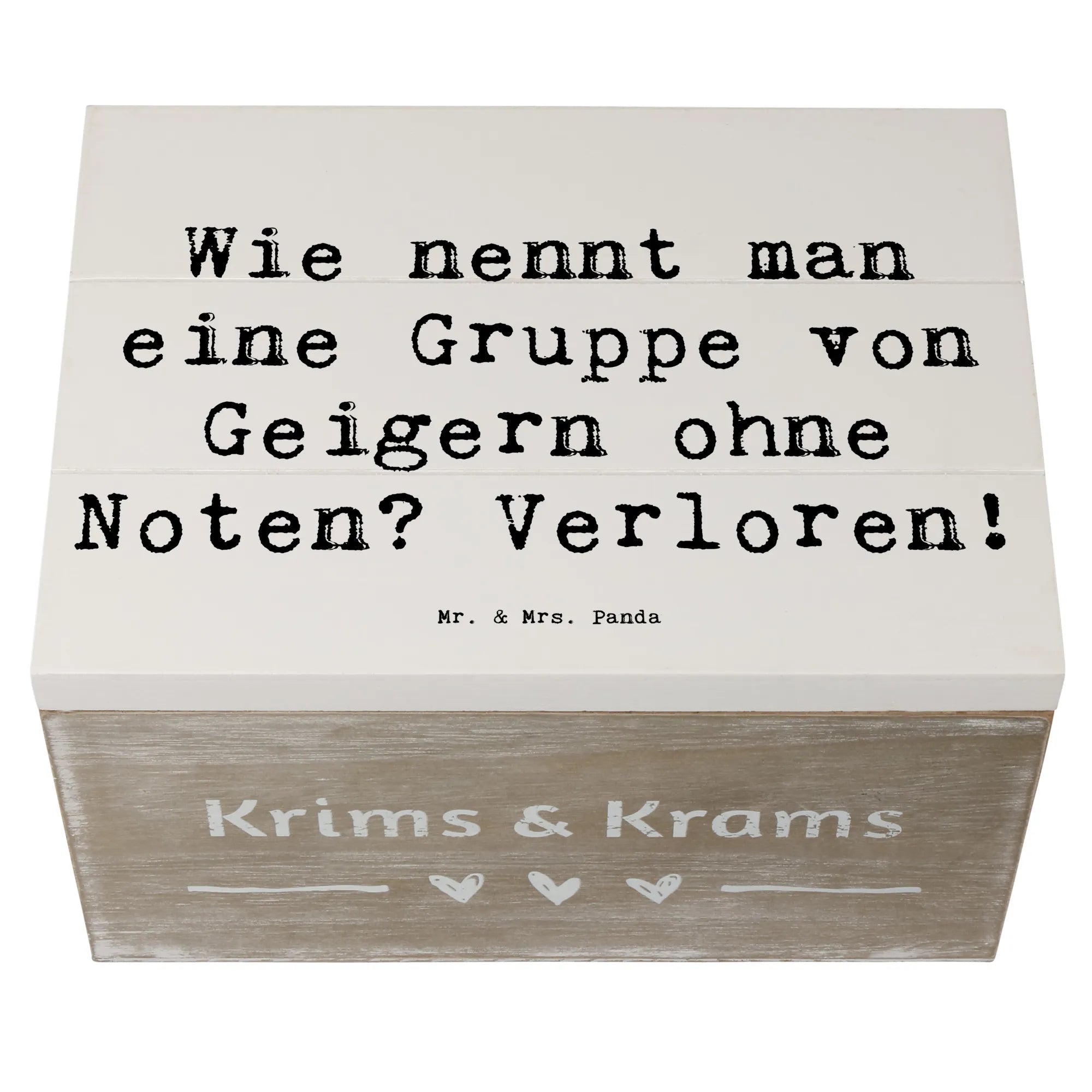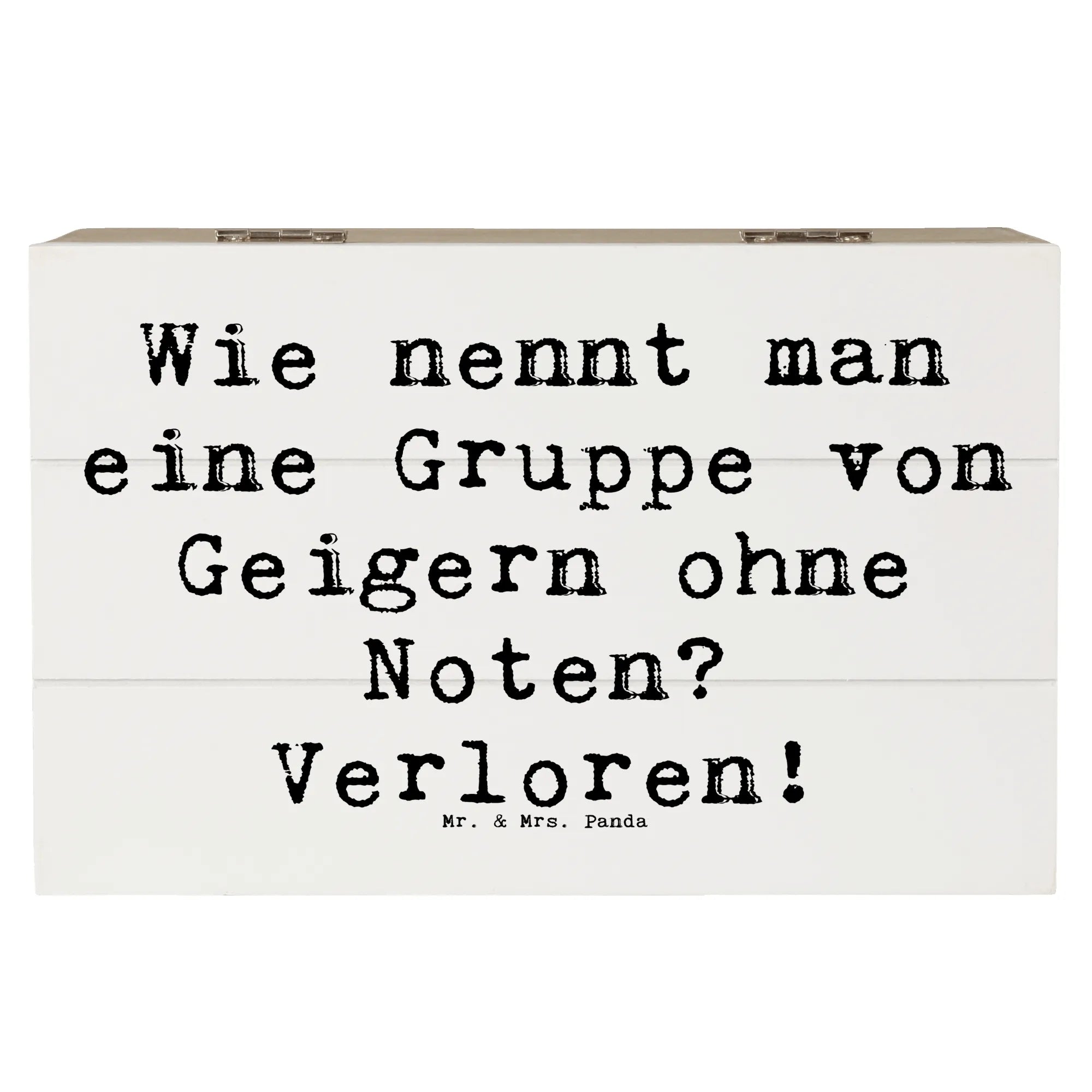 Der eingearbeitete Spruch "Wie nennt man eine Gruppe von Geigern ohne Noten? Verloren!" verleiht der Kiste eine humorvolle Note und versüßt so das Aufbewahren und Verschenken. Die Kiste ist zudem mit Einschlagscharnieren ausgestattet, die ein einfaches Öffnen und Schließen ermöglichen. Denk daran, dass diese Kiste nicht abschließbar ist, was sie zu einem perfekten Ort für alles macht, was du zur Hand haben möchtest.