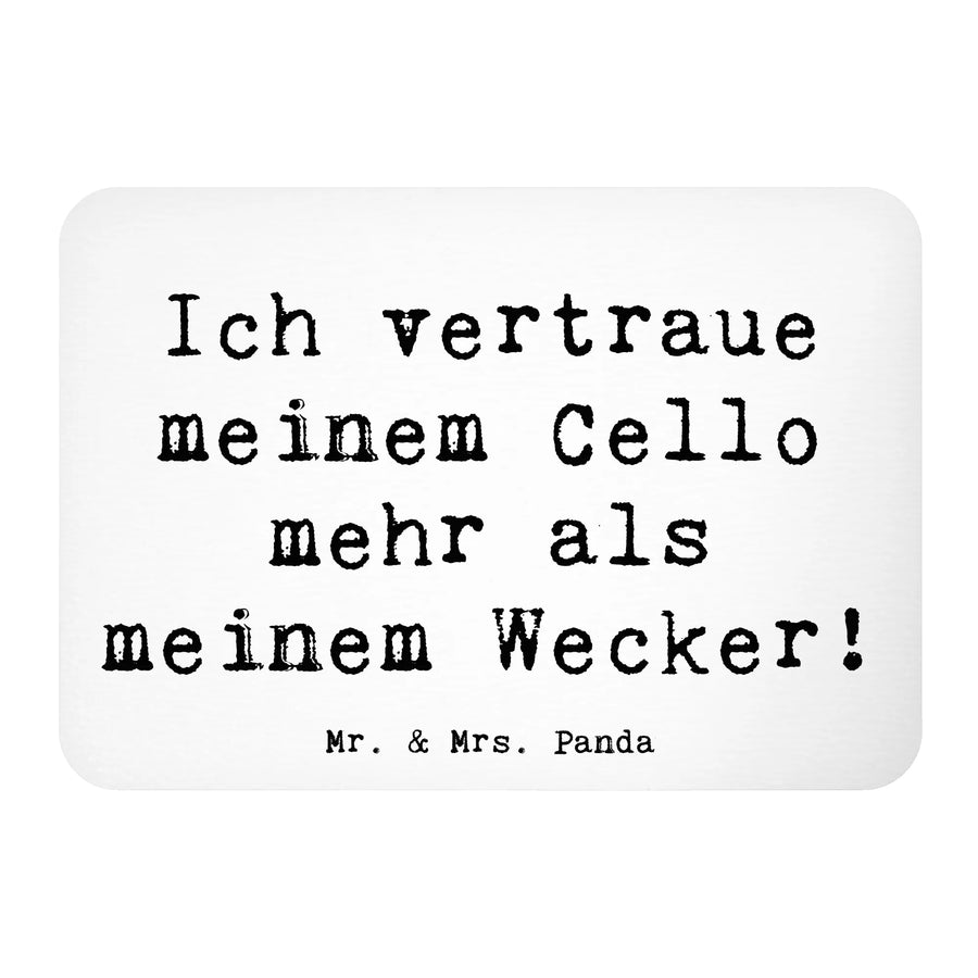 Der süße Magnet mit dem Cello-Motiv von Mr. & Mrs. Panda ist das perfekte Geschenk für alle Musikliebhaber! Egal ob du ein leidenschaftlicher Cellospieler bist oder einfach nur die Klänge der klassischen und modernen Musik liebst, dieser Magnet bringt ein Stück Musik in dein Zuhause. Mit dem lustigen Spruch "Ich vertraue meinem Cello mehr als meinem Wecker!" zaubert er dir und deinen Gästen immer ein Lächeln ins Gesicht.