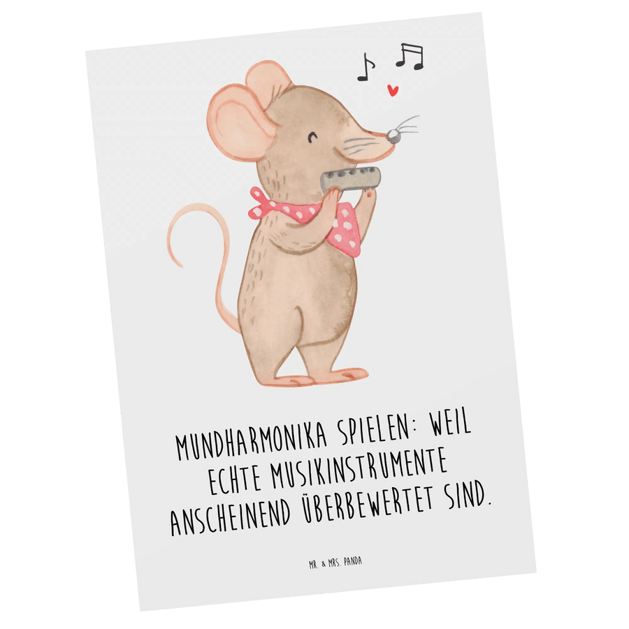 Postkarte Mundharmonika spielen: Weil echte Musikinstrumente anscheinend überbewertet sind. - Weiß