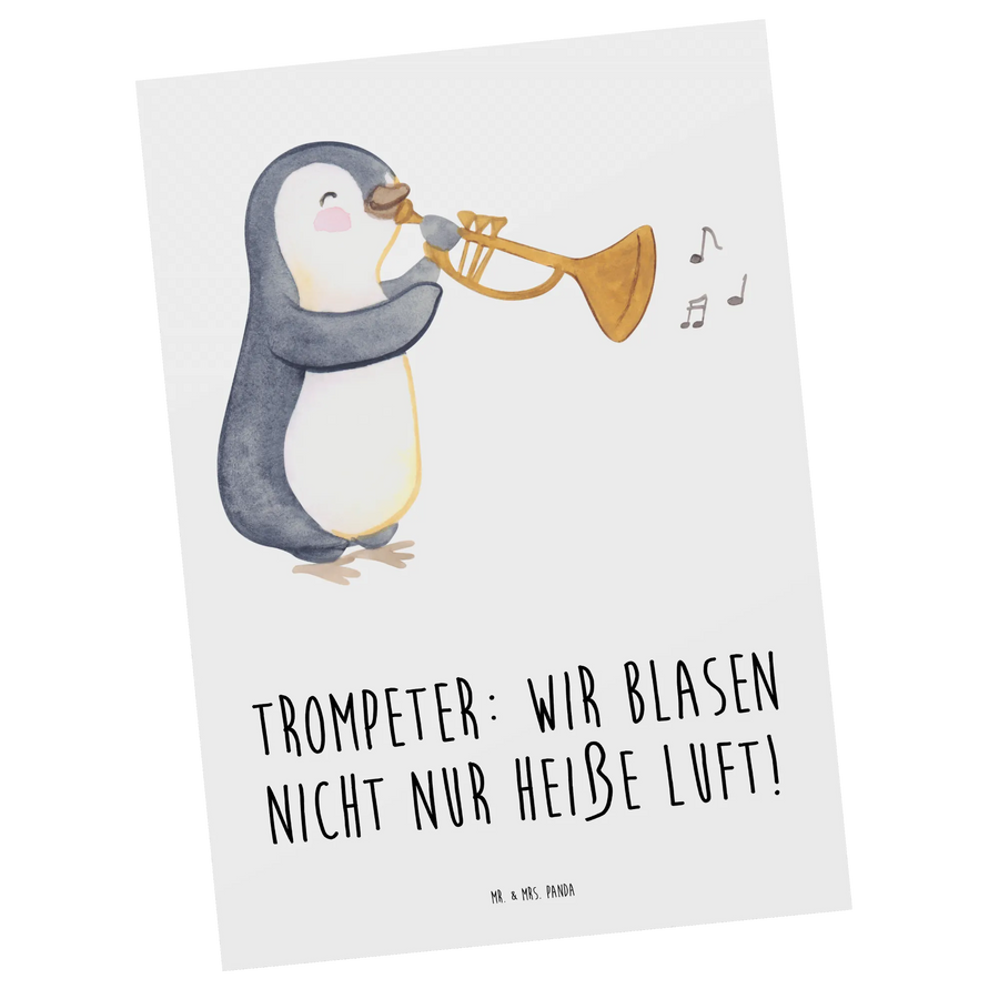 Die einzigartige Postkarte mit dem fröhlichen Trompeten-Motiv von Mr. & Mrs. Panda ist das perfekte Geschenk für alle Musikliebhaber und passionierten Musiker! Egal, ob du einem Freund zu seinem Geburtstag gratulieren, eine Einladung zu einer musikalischen Feier verschicken oder einfach nur 'Danke' sagen möchtest – diese Karte ist immer die richtige Wahl. Mit dem witzigen Spruch 'Trompeter: Wir blasen nicht nur heiße Luft!' bringt sie garantiert ein Lächeln auf die Gesichter der Empfänger!