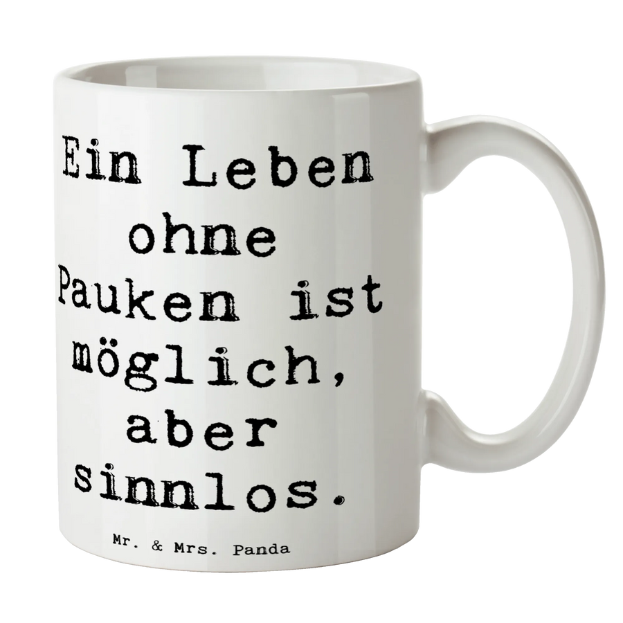 Entdecke die wunderschöne Kaffeetasse mit dem einzigartigen Motiv der Pauken aus der Mr. & Mrs. Panda Kollektion "Musizieren & Instrumente"! Diese charmante Keramiktasse ist nicht nur ein Blickfang, sondern auch das perfekte Geschenk für Musikliebhaber aller Art. Egal, ob du ein Freund, ein Kollege oder ein Familienmitglied beschenken möchtest, diese Tasse wird mit Sicherheit für Freude sorgen. Der inspirierende Spruch "Ein Leben ohne Pauken ist möglich, aber sinnlos." wird alle musikalischen Herzen höher schlagen lassen!