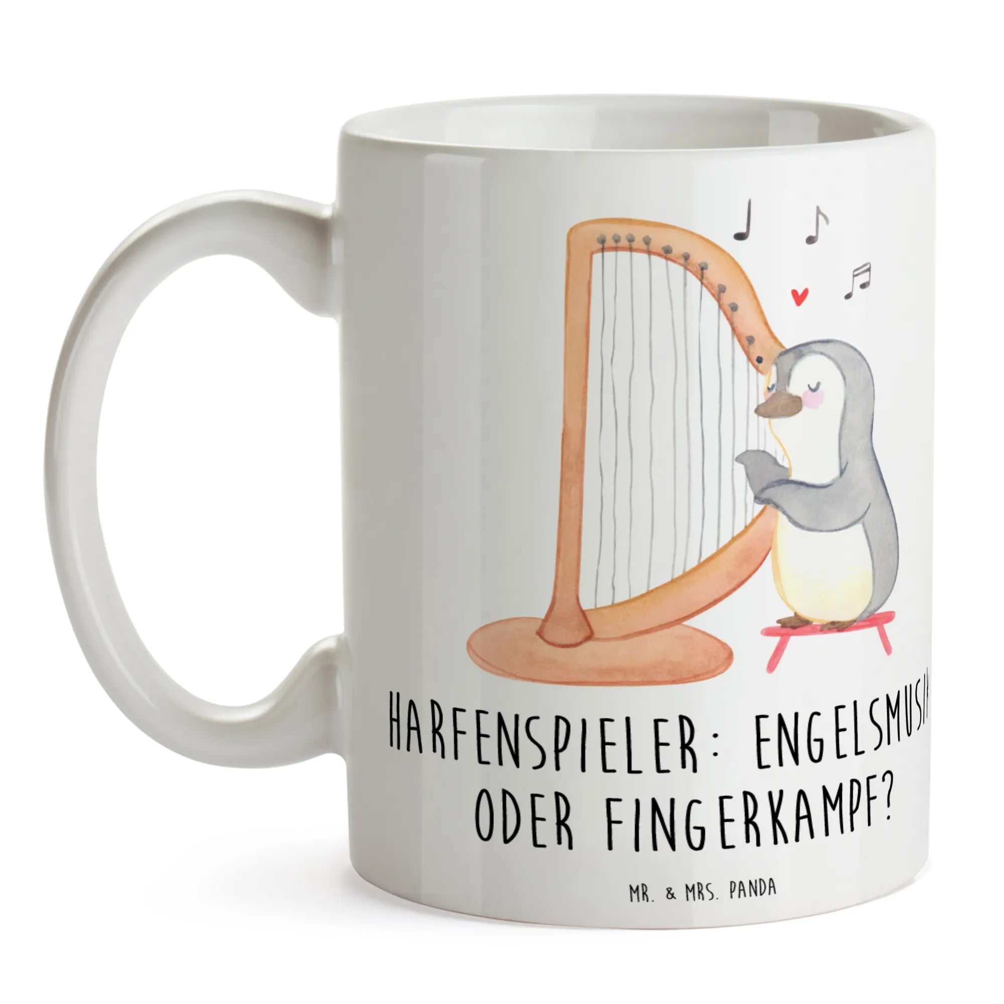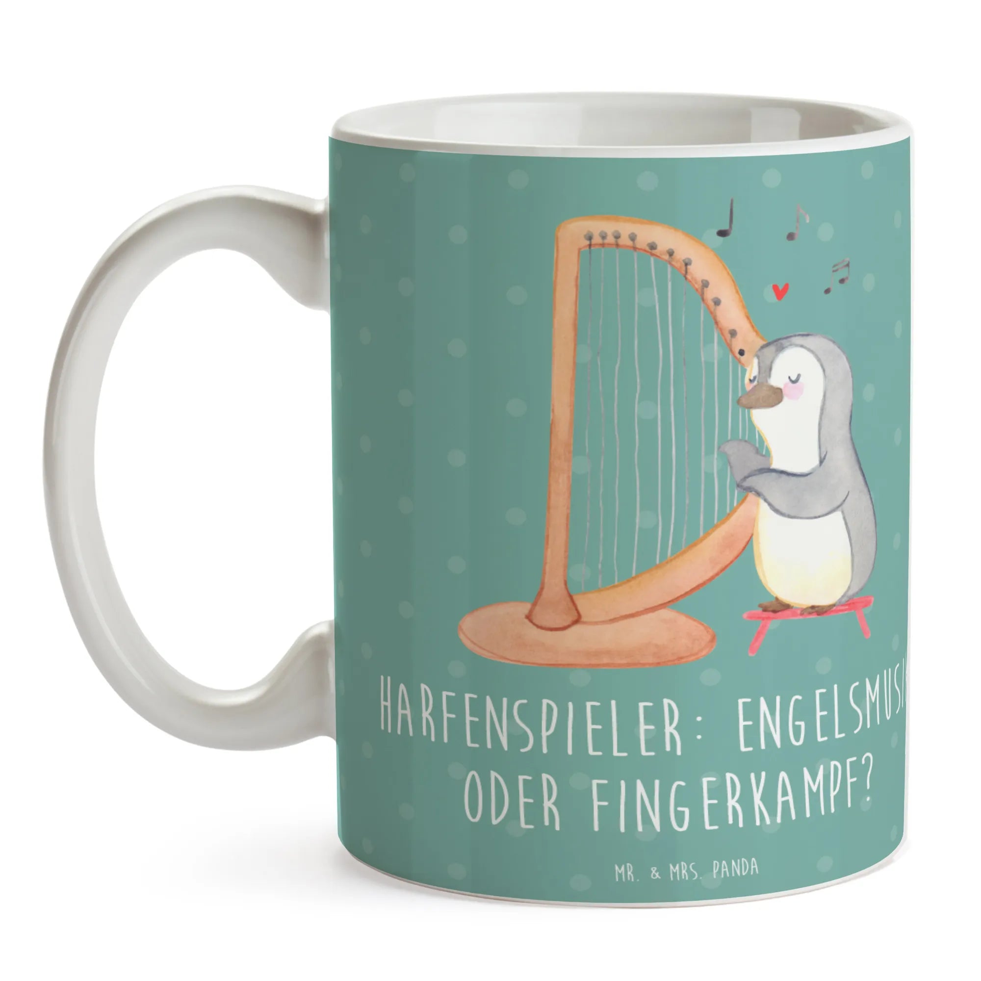 Entdecke die perfekte Tasse für jeden Musikliebhaber! Die wunderschöne Keramiktasse von Mr. & Mrs. Panda ist nicht nur ein Blickfang, sondern auch ein treuer Begleiter für Dein nächstes Kaffee- oder Teeerlebnis. Mit ihrem eleganten Motiv einer Harfe und dem Spruch "Harfenspieler: Engelsmusik oder Fingerkampf?" bringt sie eine himmlische Note in Deinen Alltag.